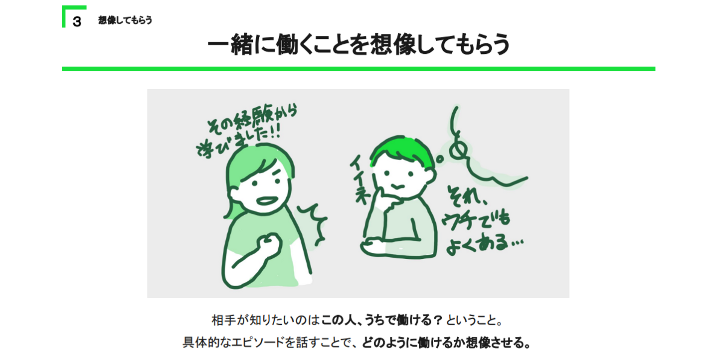 具体的なエピソードを交えることで、相手にも実際に一緒に働く姿を想像してもらうことが大切なのですね。