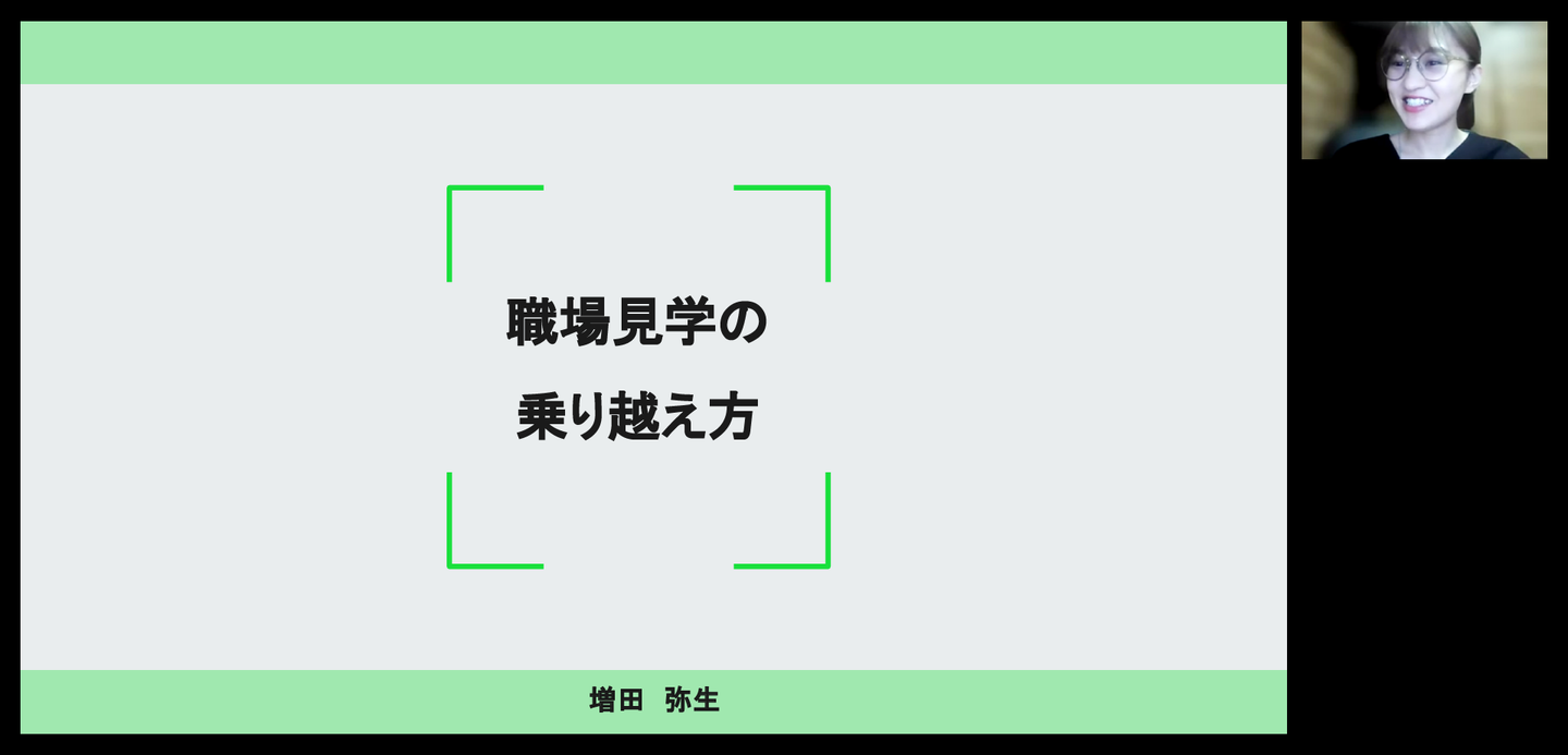 雑談はできるけどプレゼンは苦手という増田さんの登壇タイトルは「職場見学の乗り越え方」!