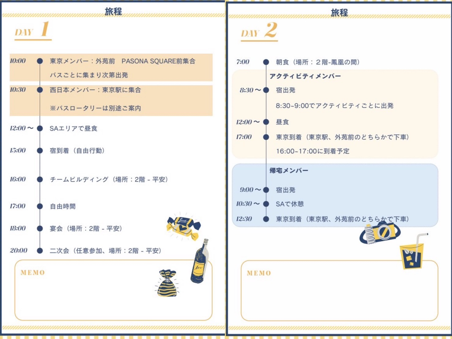 10月のとある土日に1泊2日で群馬県に社員旅行に行きました♨社員旅行運営チームが有志で集い、なんと約200名が参加!素敵な旅のしおりの作成から2日目のアクティビティなどを構成してくれたのです。