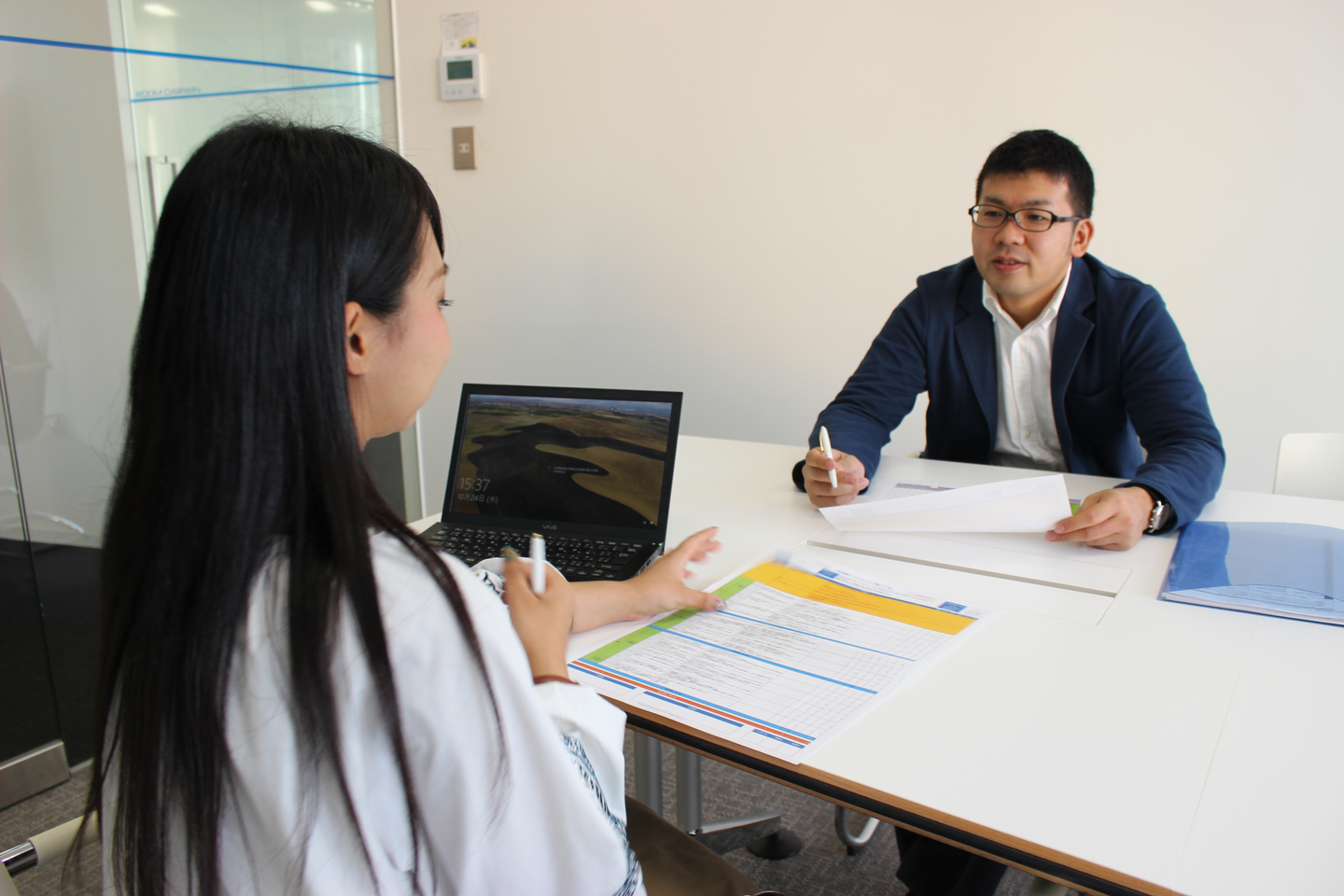 月次の面談とは別に「評価面談」を通じ、評価も行っています。