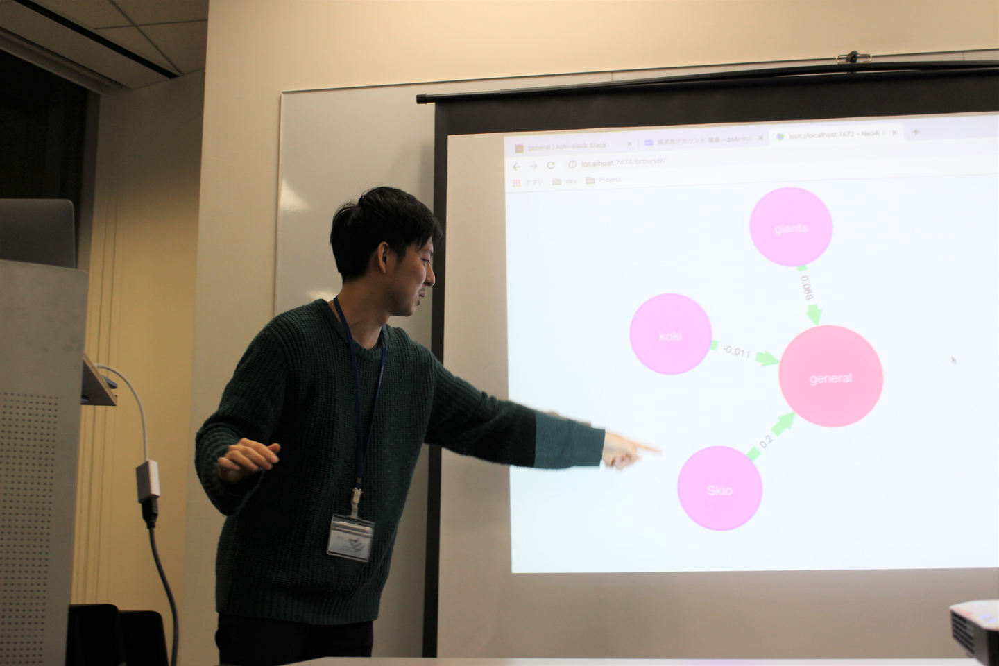 高橋さんの、「Slackの会話をNeo4jで可視化してみた。」でした!