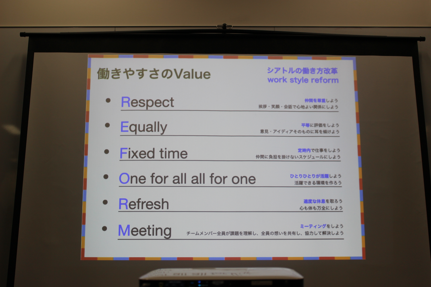 「シアトルの働き方改革〜work style reform〜」として発表してくださった