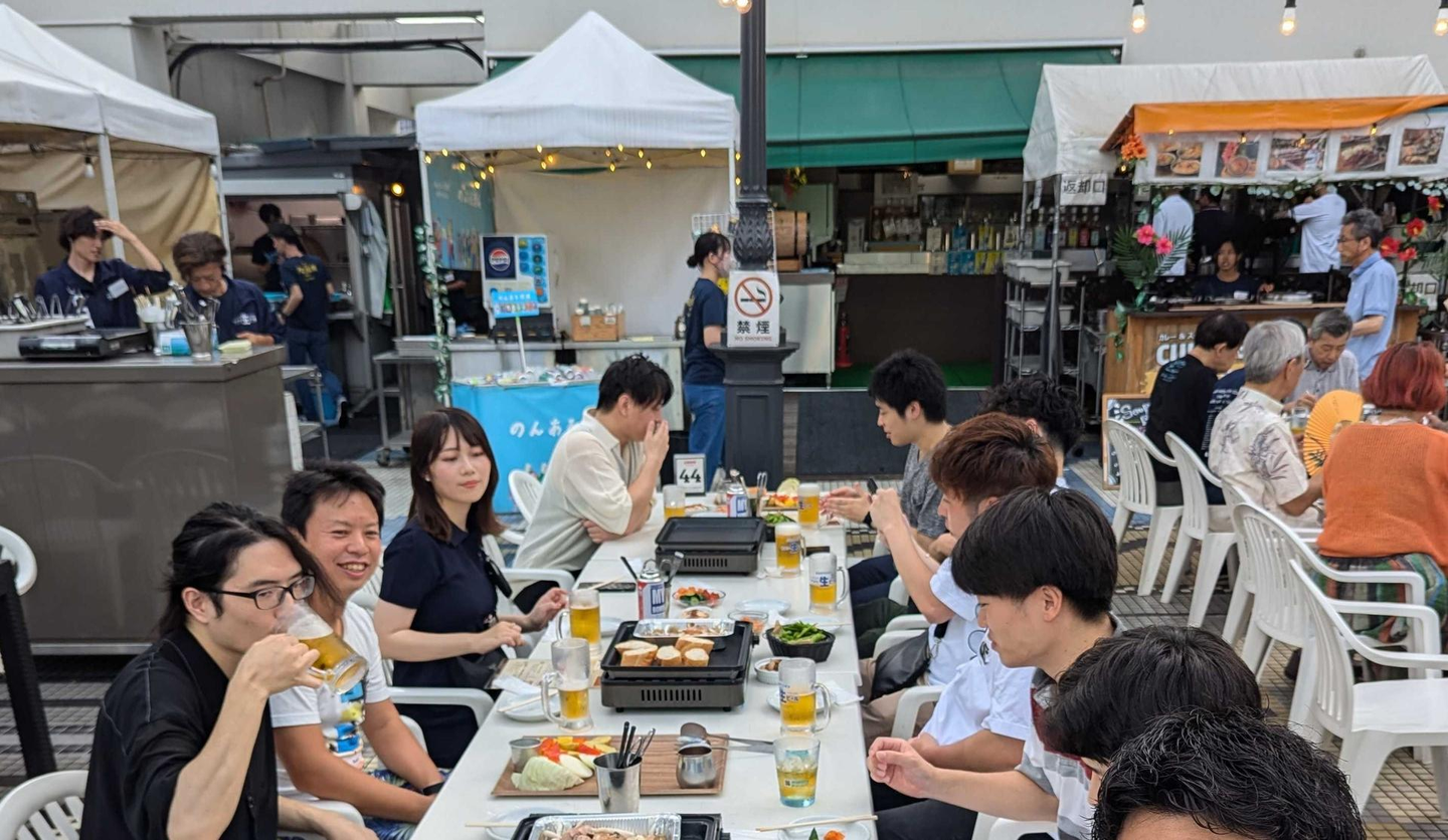 7月に、夕方から大阪にいるメンバーで集まり、梅田のビアガーデンに行って参りました!