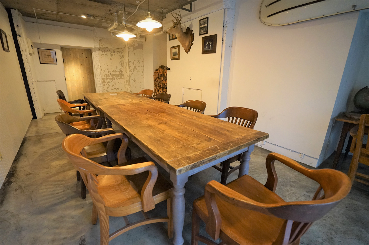 壁に鹿の剥製やボートが掛けてあったりして、さりげなくおしゃれな雰囲気です。