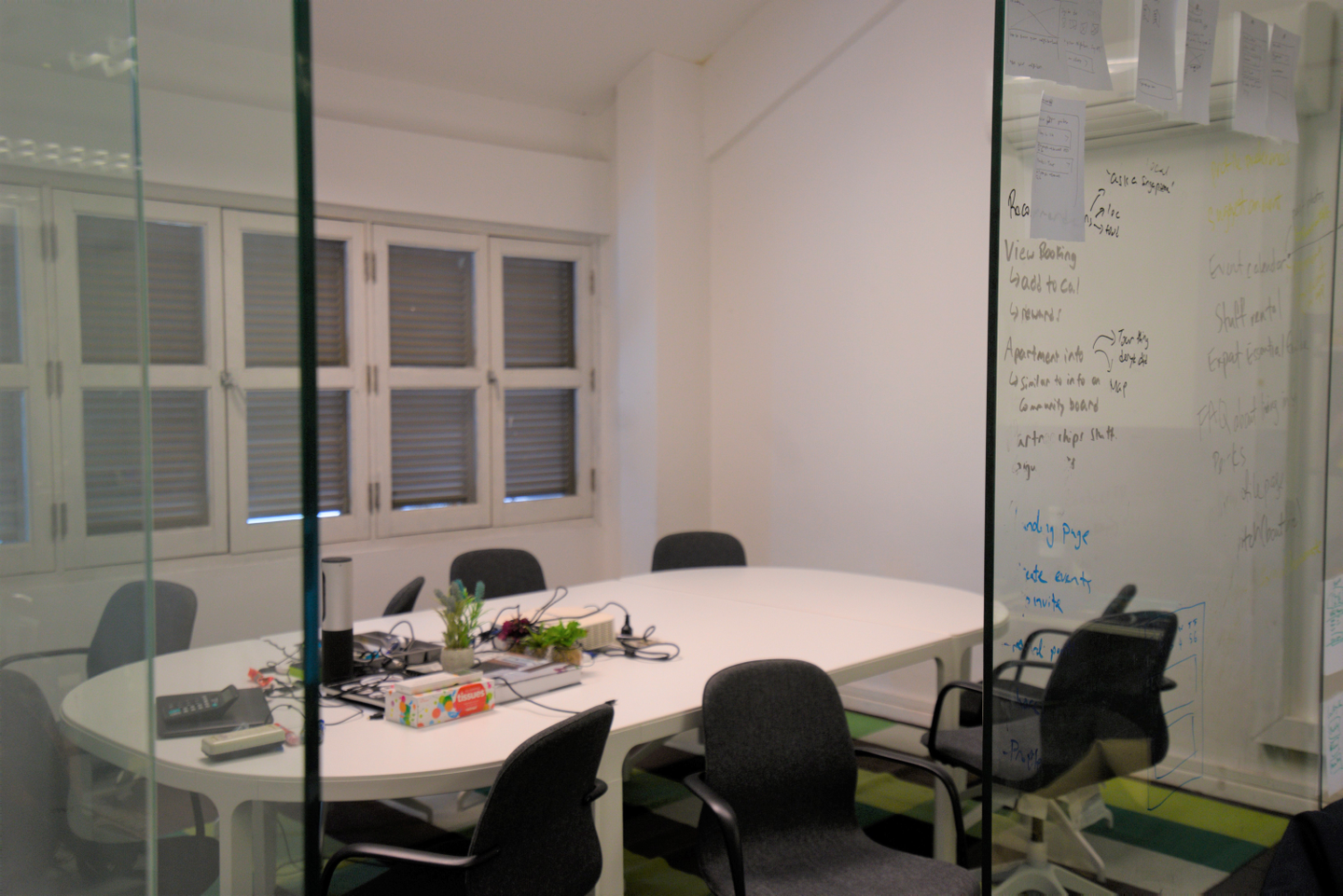 オフィスの中にミーティングルームもあり、仕切りのガラスにメモができるのはスタートアップらしいアイディアですね(笑)ランチの時は社員がここに集まってランチを一緒に食べることが多いようです!