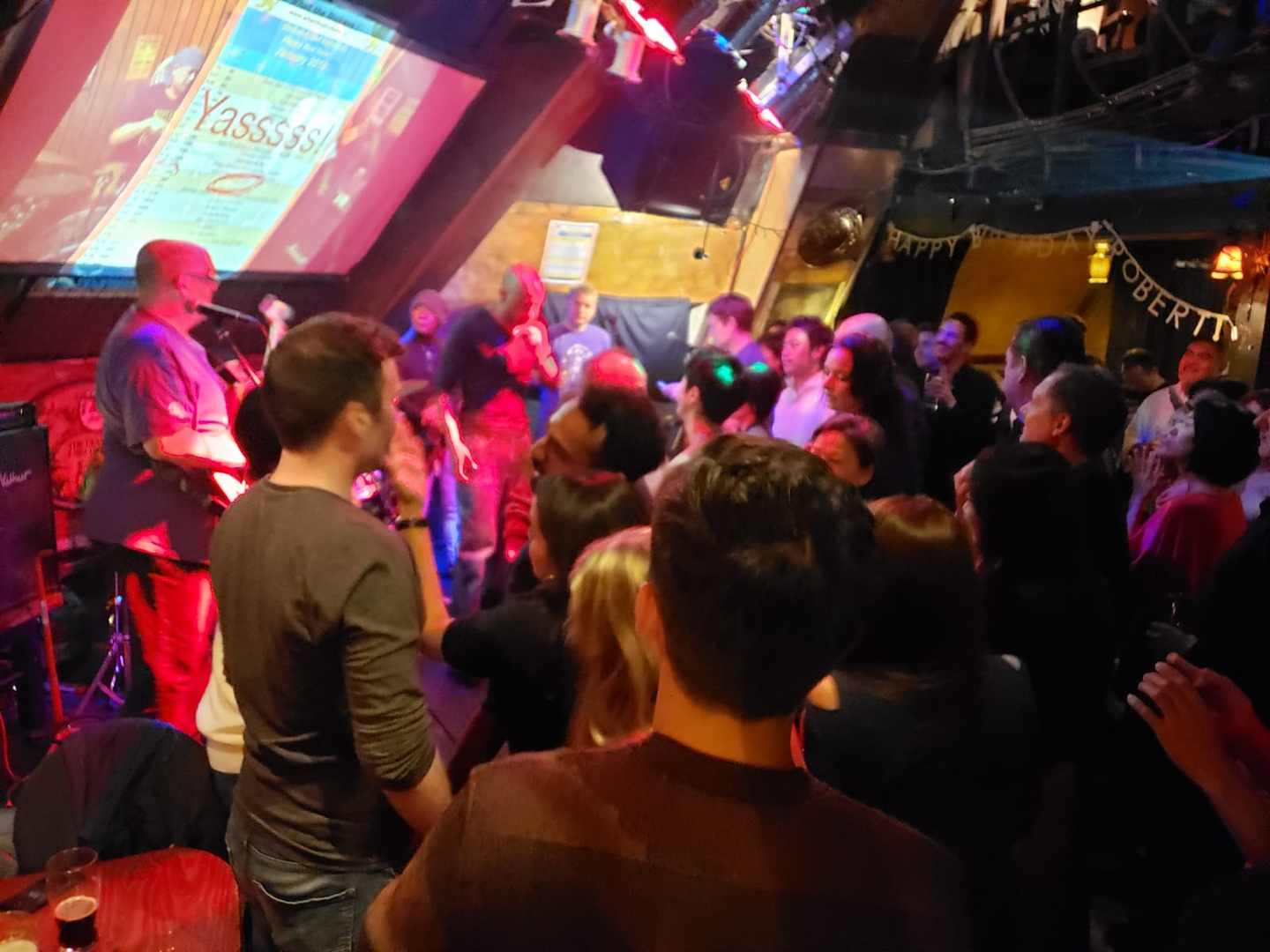 10時頃には多くの利用客がダンスフロアで有名ロックバンドAC/DC(エーシー・ディシー)のカバー曲に合わせて踊っていました!