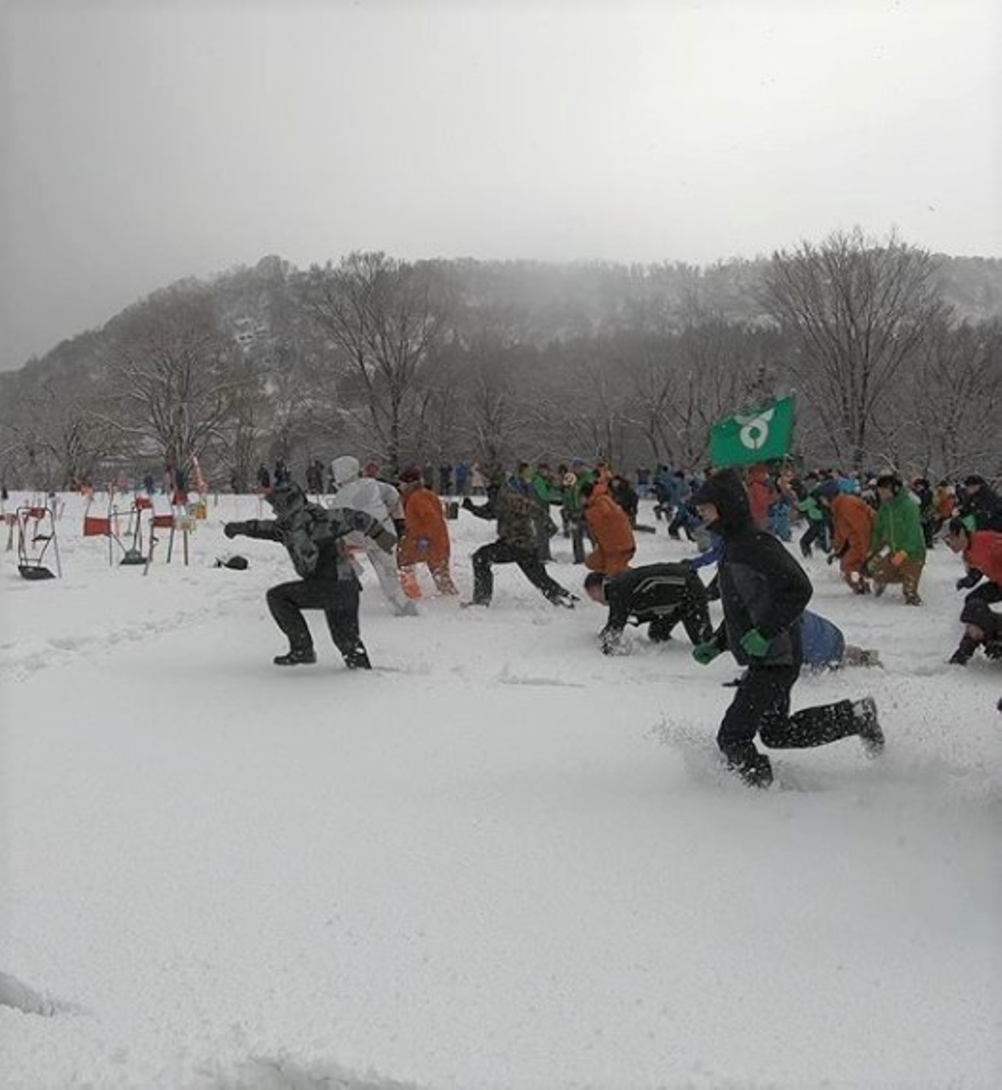 地面出し競争とは、その名の通り、積雪量が日本一の町肘折で誰よりも雪を早く掘ったチームが優勝するというとても変わったお祭りです。