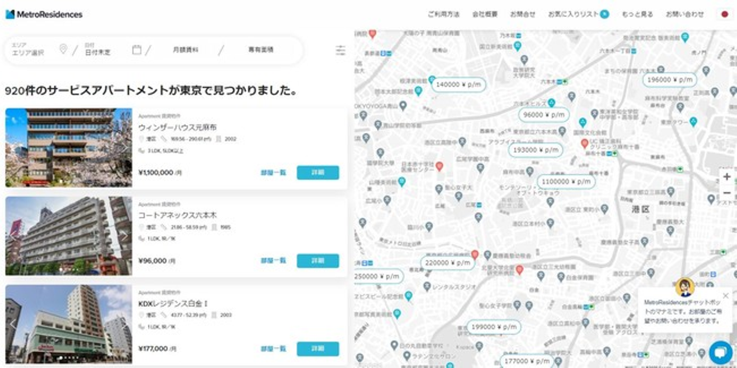 日本(日本語)https://www.metroresidences.com/jp/apartment-rental