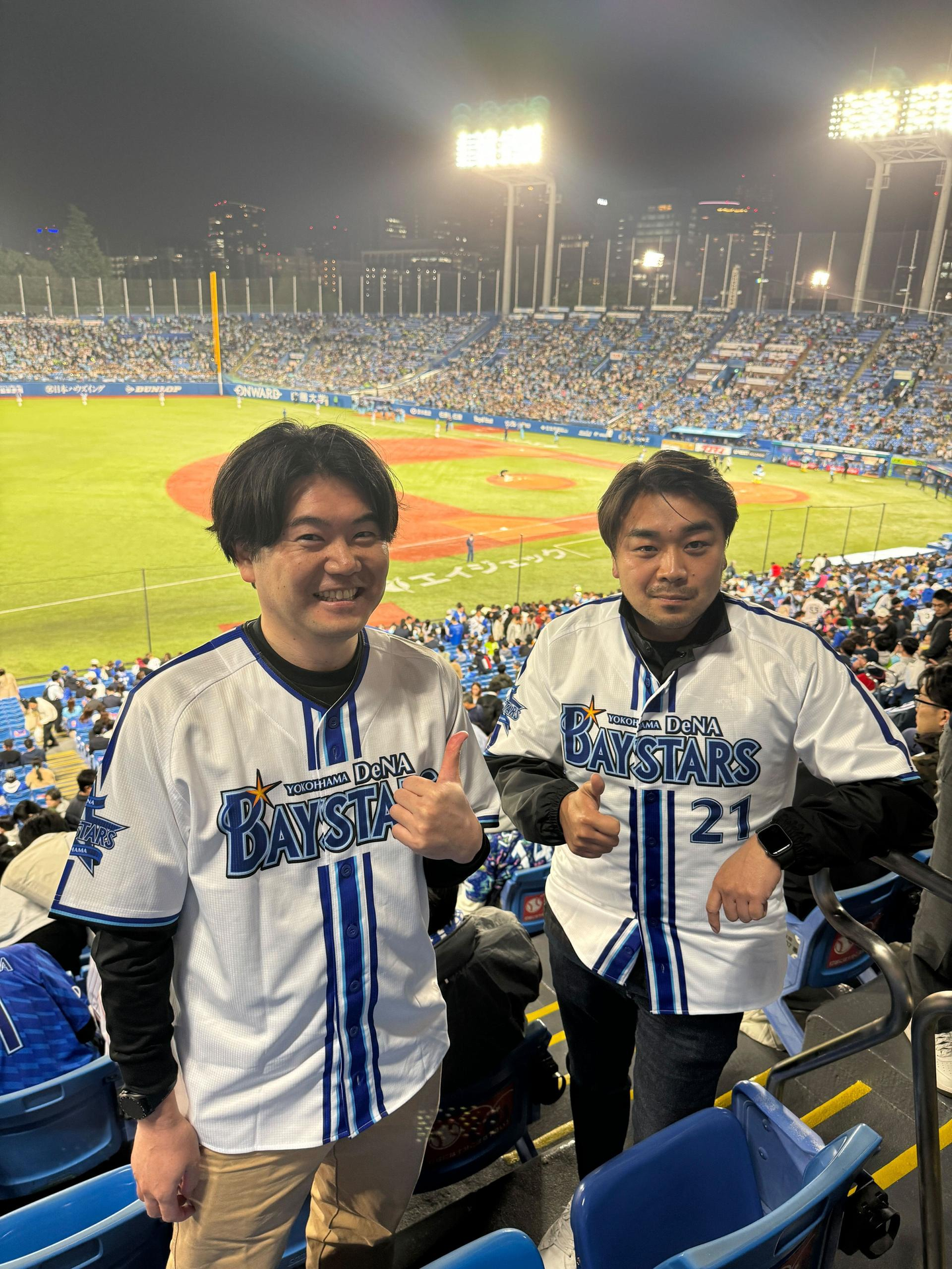 2人ともオフィスからしっかりと横浜ユニフォームを着こんで出陣しました!