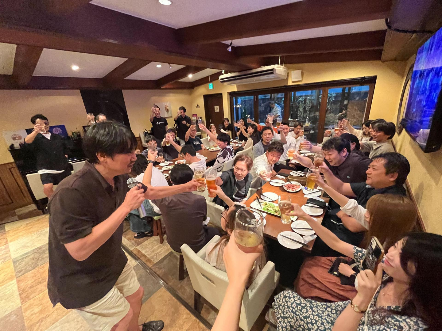 全体会議の後は、コミュニケーション促進のための懇親会が開かれます。今月は、来月からシンガポールに移住する國光CEOの壮行会を、Thirdverse社と共に開催しました。