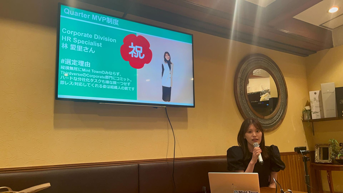 Mint Townはフルリモート / フルフレックスで勤務しているので、毎月1度の全社会をリアルメインのハイブリッド形式で開催しています。