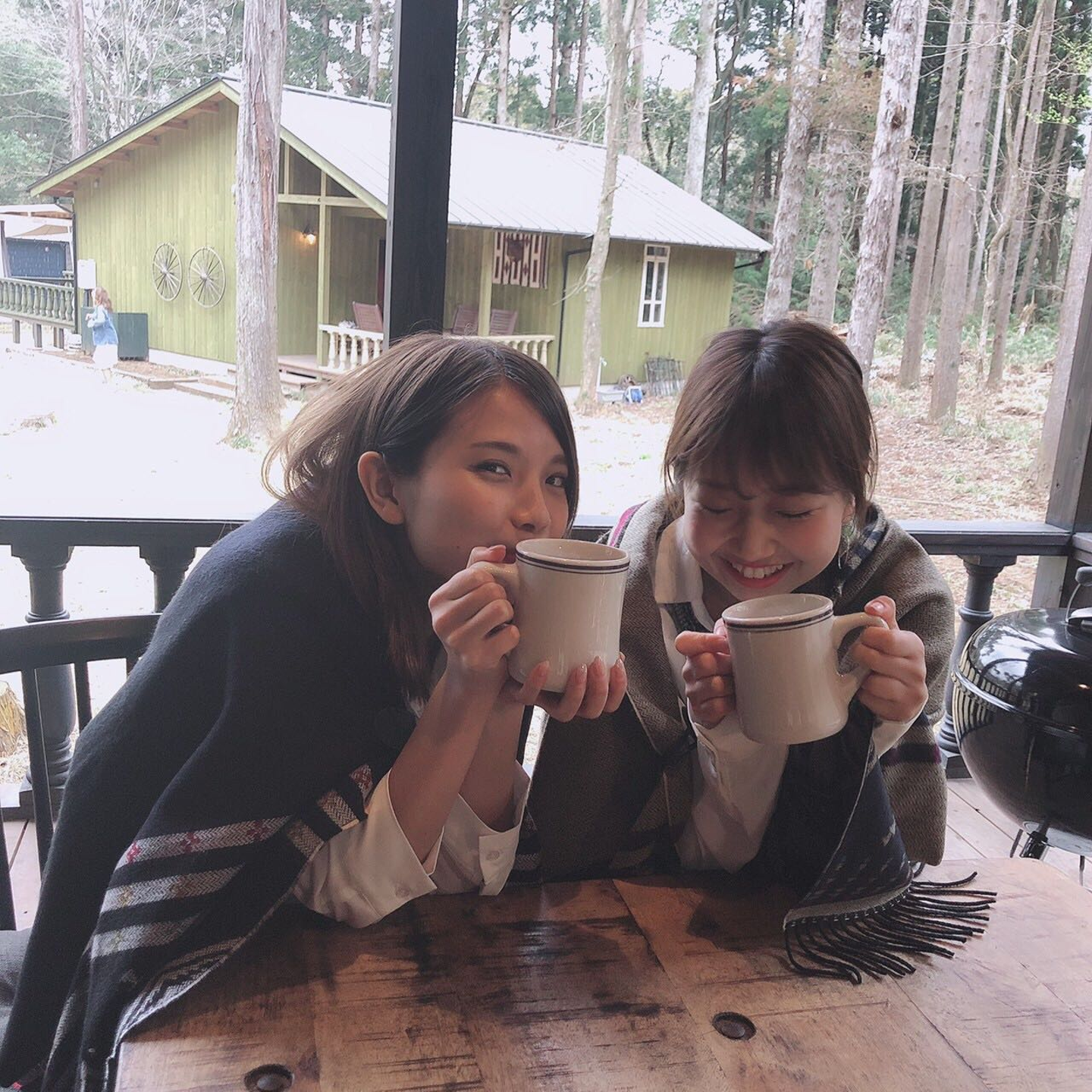 部屋にあったポンチョを皆で着てみたり♡