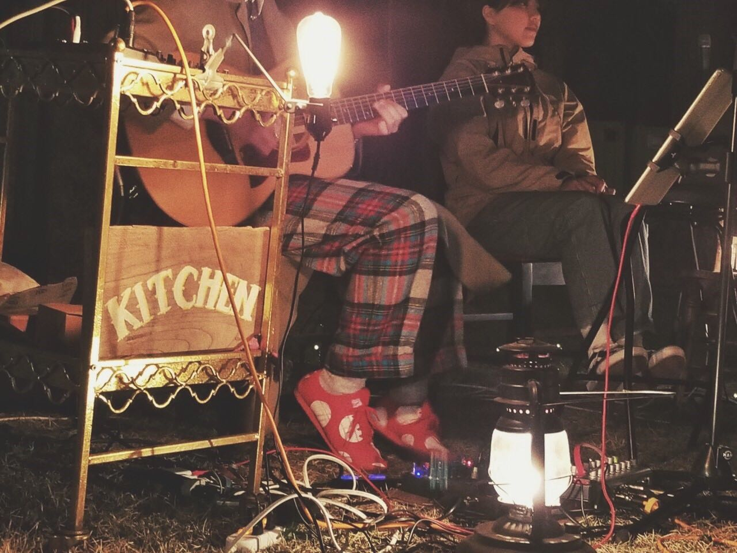 Dinneの後に、みんなで焚き火を囲みながらアコースティックライブ演奏を。