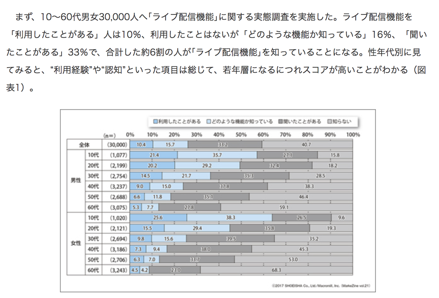 私は学生の頃からライブ配信を習慣的に視聴していたのですが、やはり若年層の認知率は高いんです!
