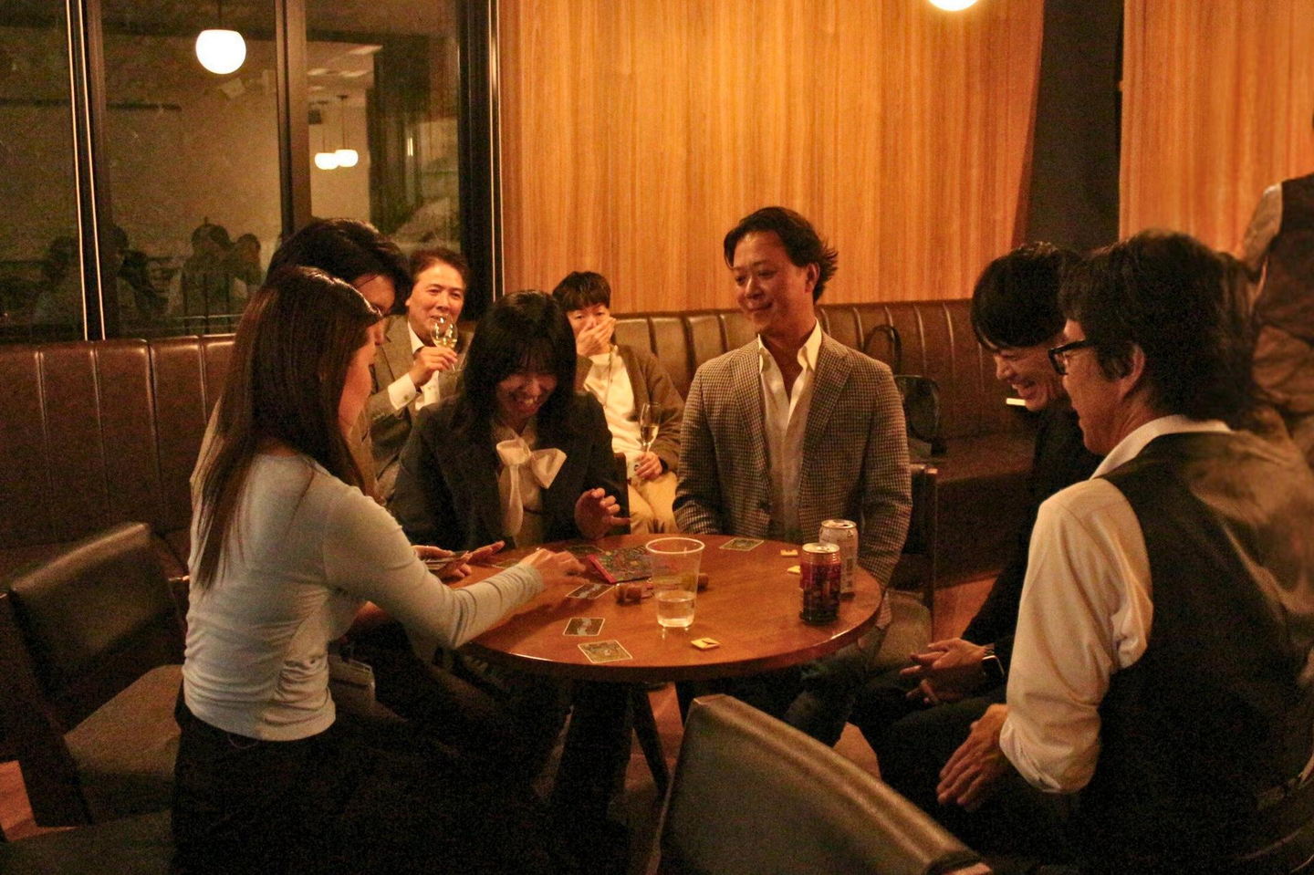 (直近に開催された11月のボドゲ部では、なんと会食後の岡本さんが突然登場…!