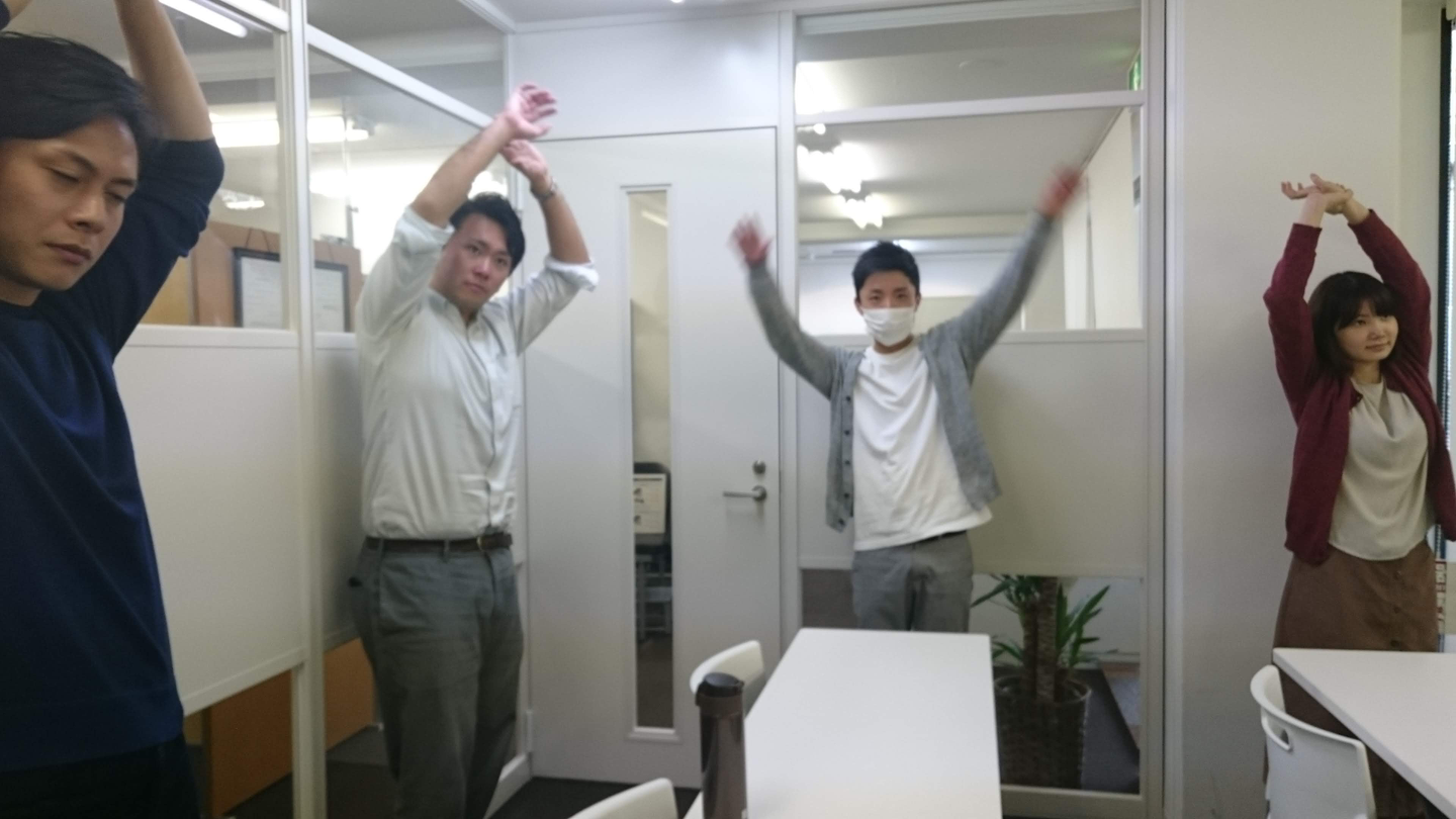 本日も午後3時のチャイムが「ミラプロリフレッシュタイム」を知らせます。デスクワークでガチガチの体を動かしてスッキリリフレッシュ、終礼までがんばろうね!の合図です。