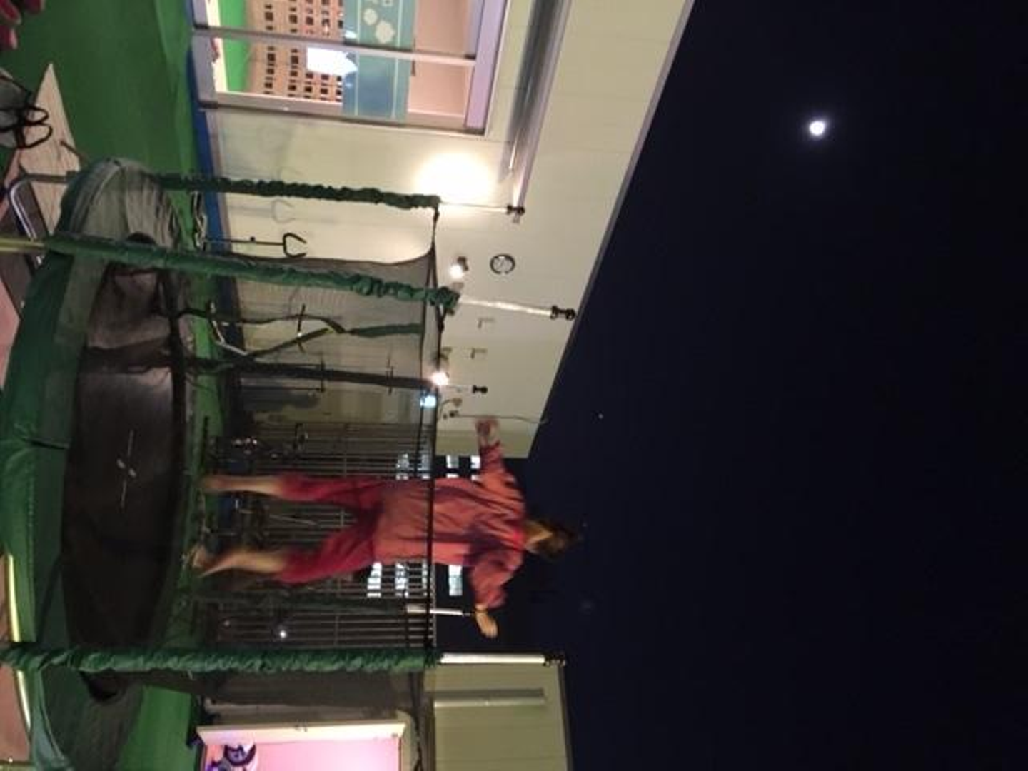 施設は2年前にできたばかりでとてもキレイ!サウナや岩盤浴、マッサージも充実!屋上には謎のアクティブゾーン!(月明かりの下、夢中でトランポリンに励む社員 ↓↓ )