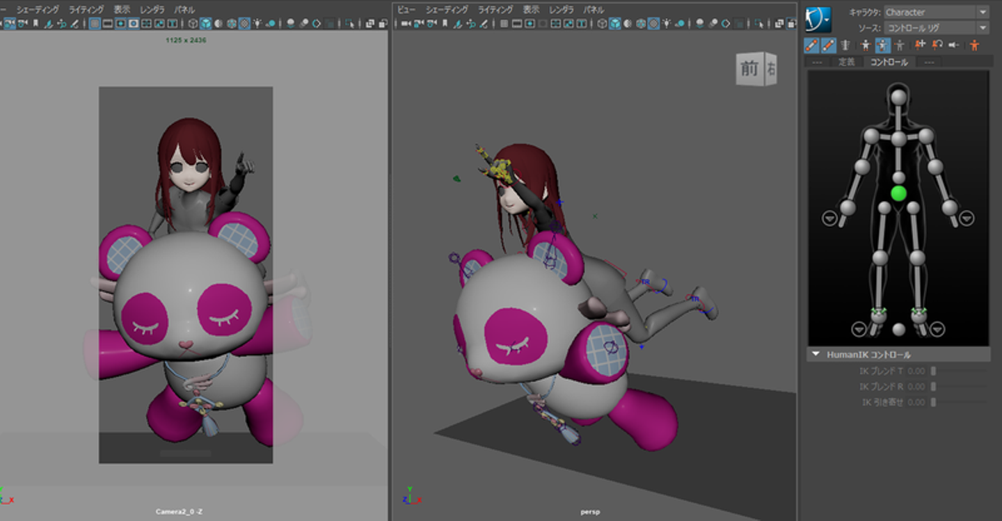 そこからがモーションデザイン作業ですね。私の場合はデザイン画と、アクターさんから取ったモーションキャプチャーを見て作業を進めていて、主な使用ツールはMayaのHumanIKです。重力などのリアリティがなくならないように意識しますが、一番のポイントはエモモとしての『かわいさ』が損なわれないことです。動きの正しさを忠実に再現するというよりは、かわいさを表現できる見栄えのいいモーションを優先しています」