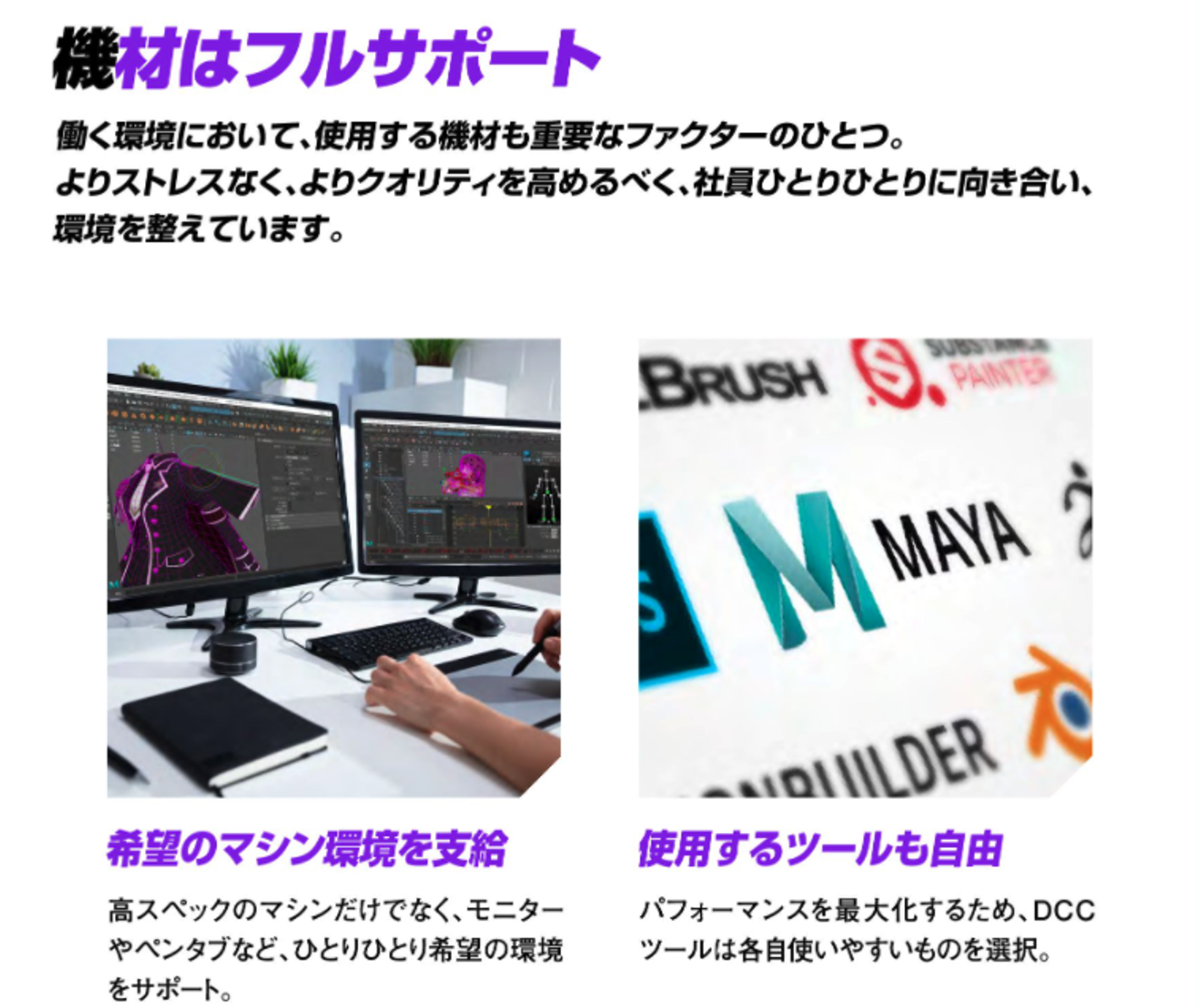下原「そうそう、デザイナーさんへの支給機材については、個々のやりやすさを重視して一人ひとりカスタマイズしていますね」