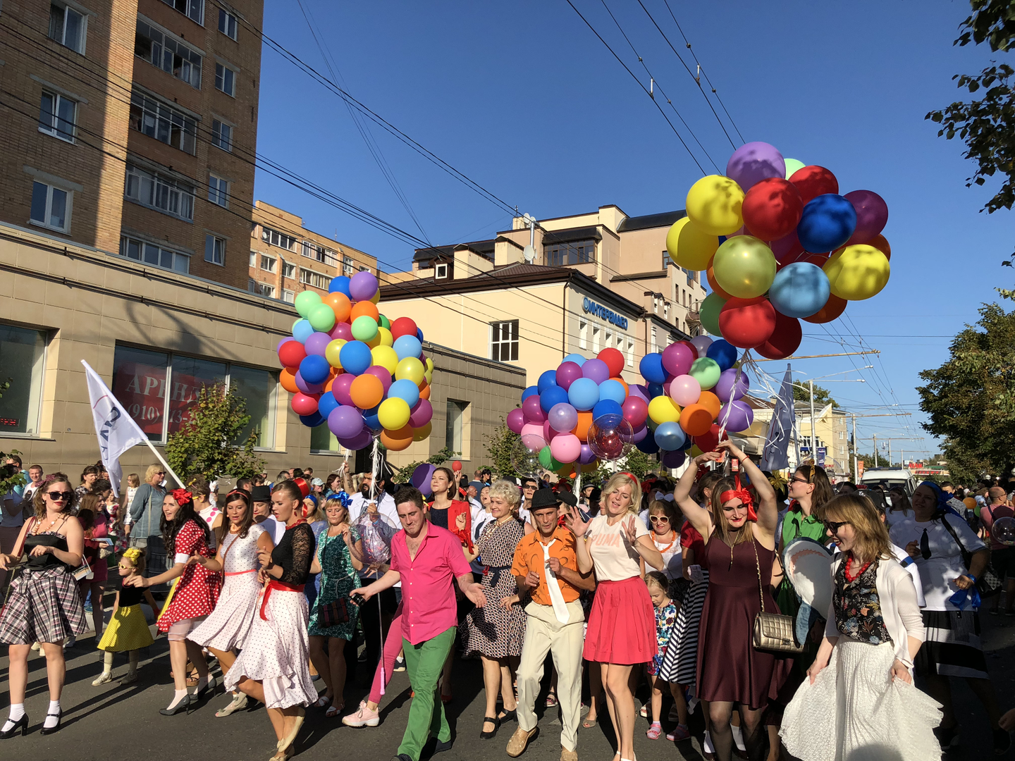 (写真下:年に一度実施されるカルーガ市でのパレードの様子。PCMA Rusのあるカルーガ市にある会社・団体が街のメインストリートでパレードをしています)