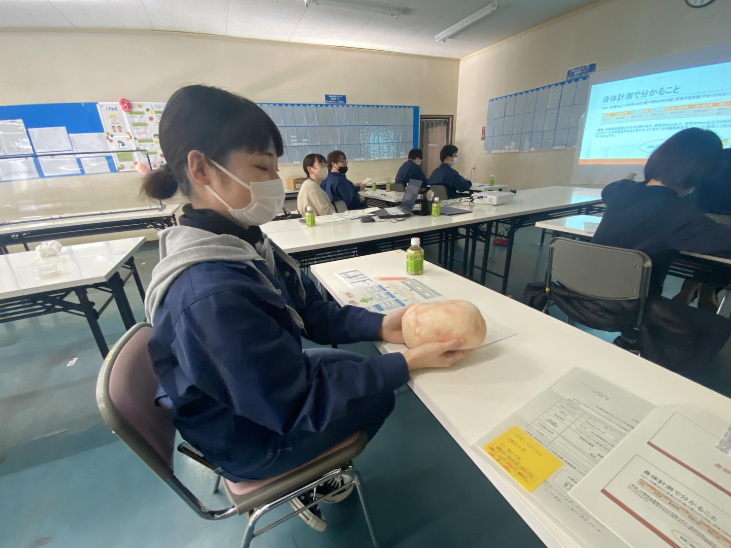 途中で、保健師の方が持ってきてくださった1㎏の内臓脂肪の模型を持ってみました。