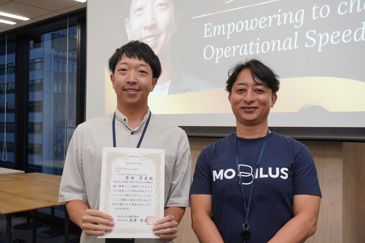 私達が大切にする「モビルスバリュー」を体現しているメンバーの実践を共有し、その功績を称える社内表彰制度「MOBILUS AWARD」を毎年開催しています。