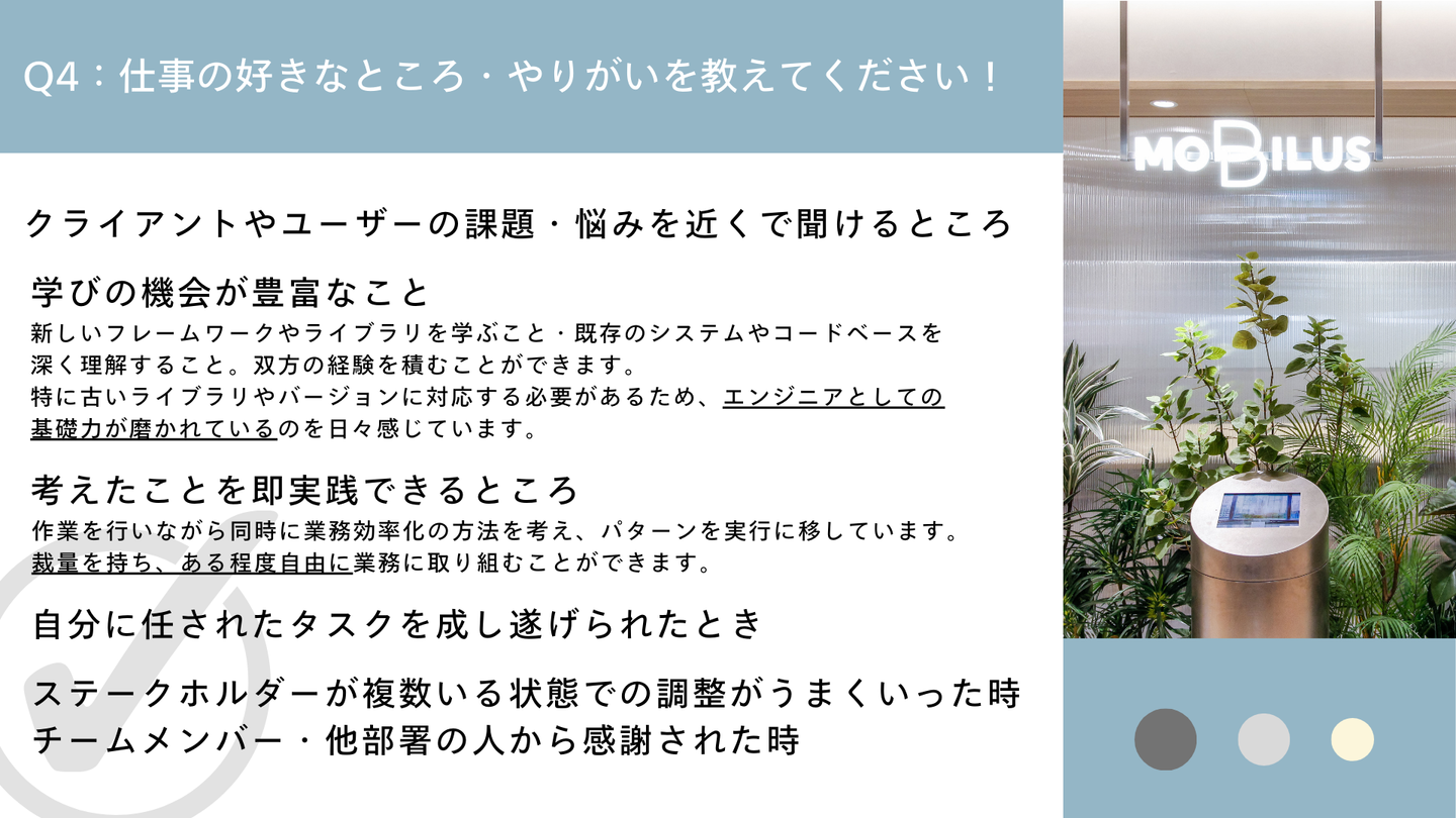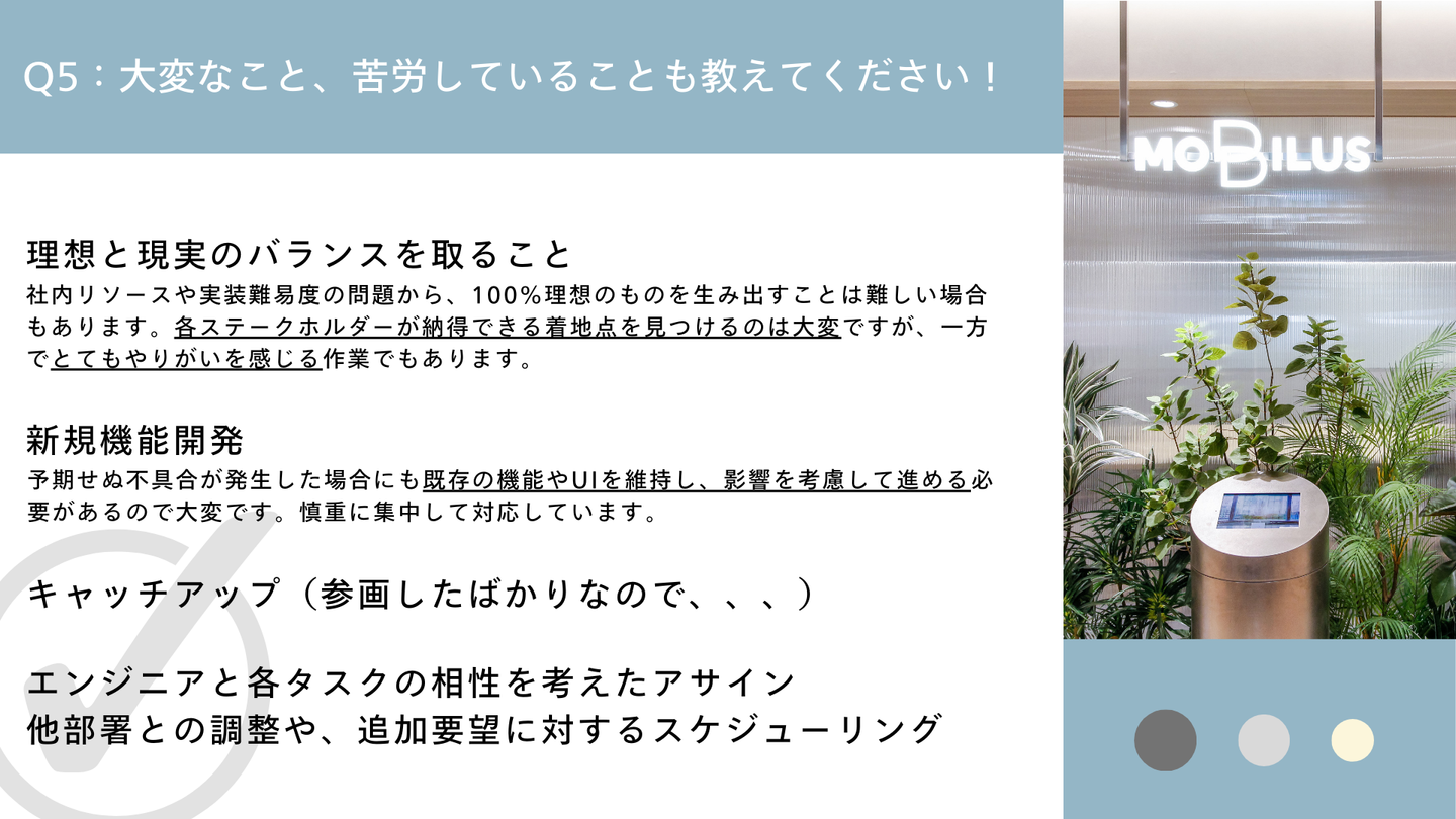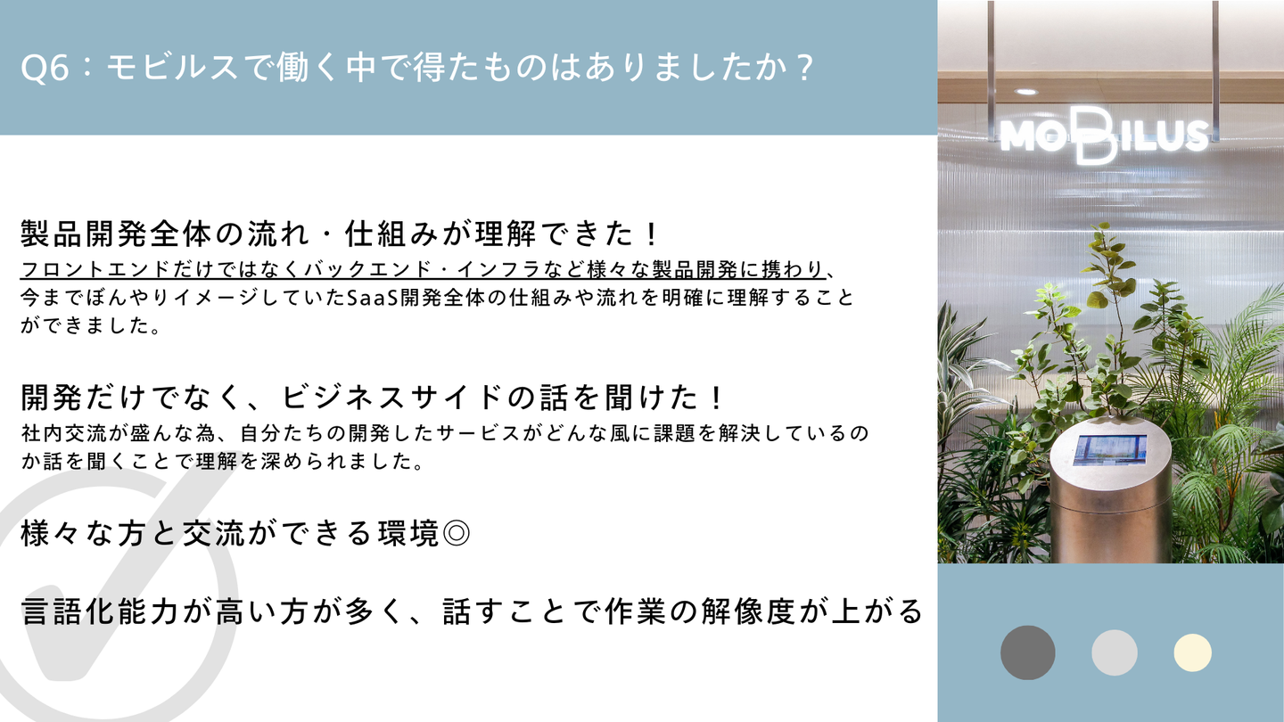 これらの意見からそれが伝わっていたら、すごく嬉しく思います。(同じ考えをお持ちの方、ぜひモビルスで一緒に働きたいです、、!)