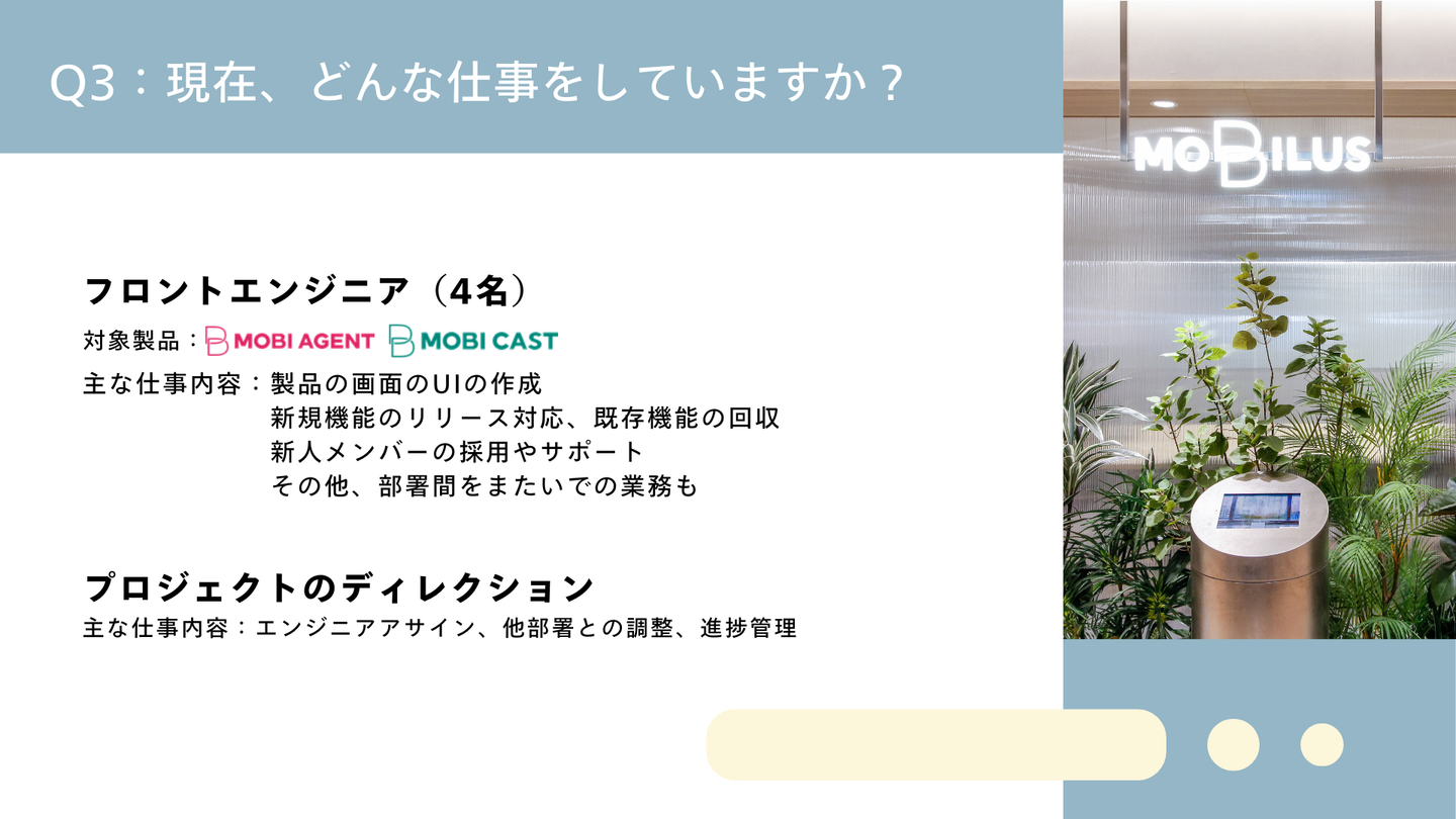 ここからはモビルスでの業務において、どんどん深掘りをしていきます!