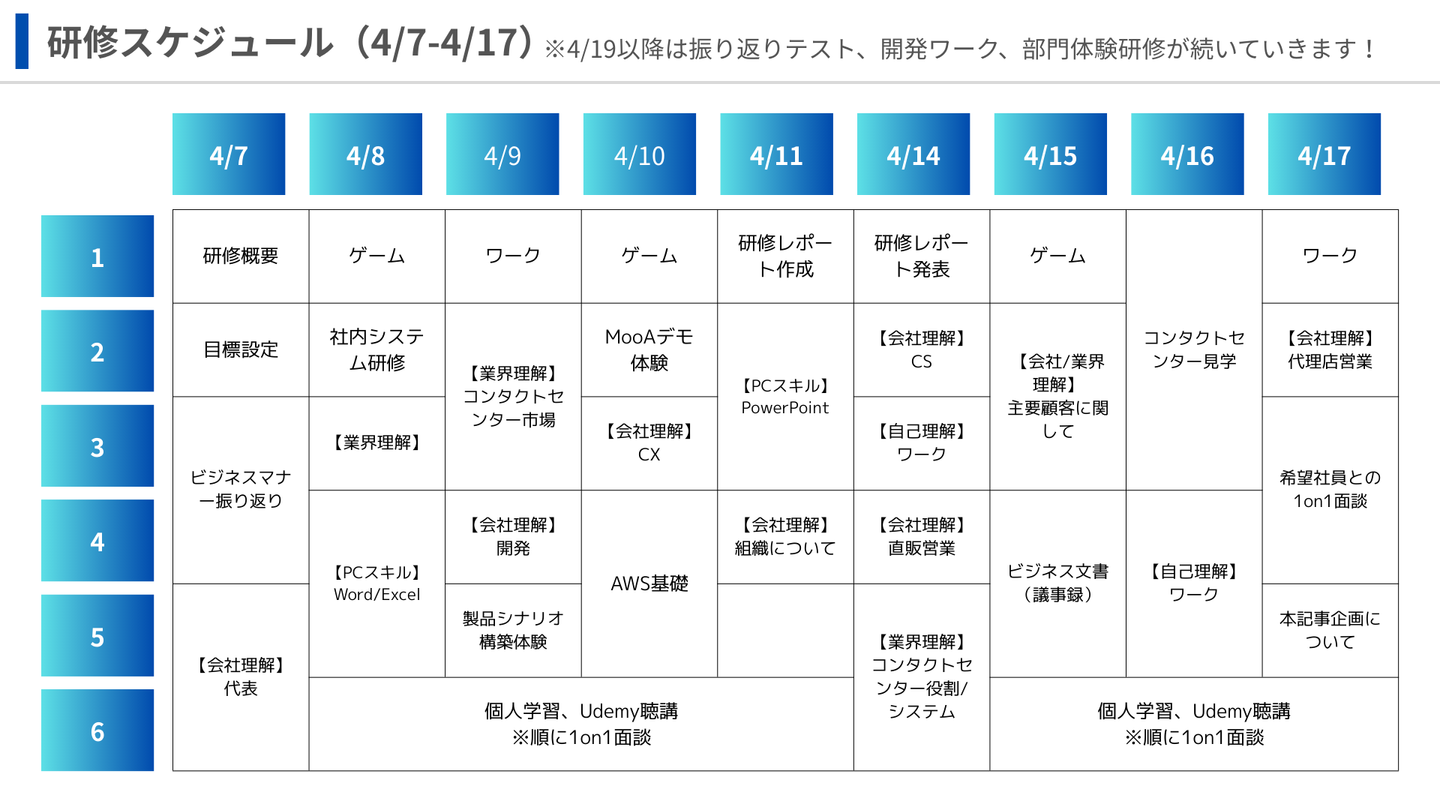 はいそうですね。確かにおっしゃっていただいた通り、よく気づいてくれたなと思って嬉しいです。より理解を深めてほしかったので、全体像を把握してから詳細について学べるように研修の順番にもこだわりました。