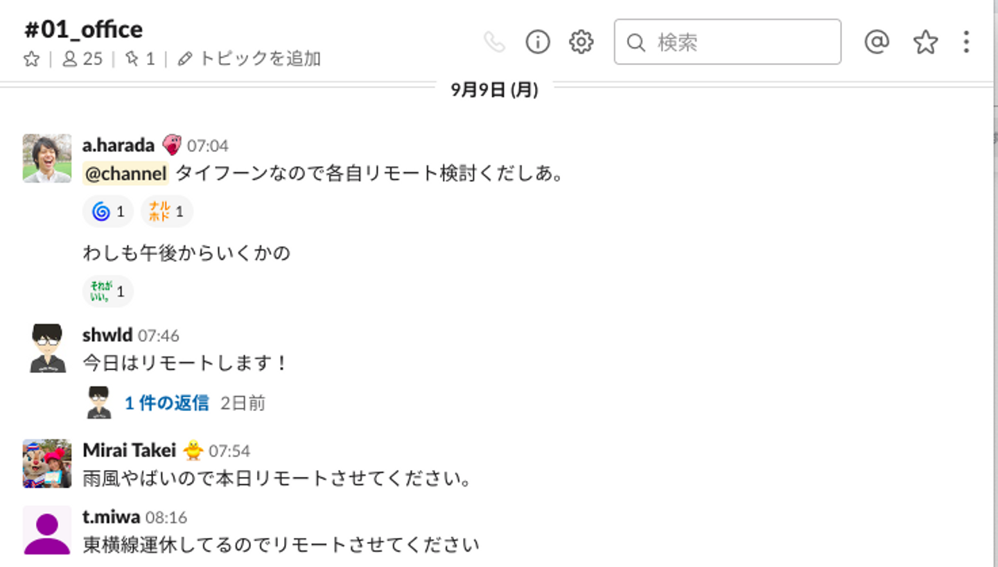 みなさんこんにちは!たかなしです。 昨日は台風により関西地方では甚大な被害、私たちのオフィスのある東京も強風によりダイヤが乱れ、帰宅時間は各地で混乱していました...。 台風が来る日に仕事に行かなければならない時は、出勤のタイミングから「今日帰れるのかな...」と不安になる人も少なくないかと思います。 しかし!mofmofメンバーはそんな心配しなくても大丈夫なのです! なぜなら ...