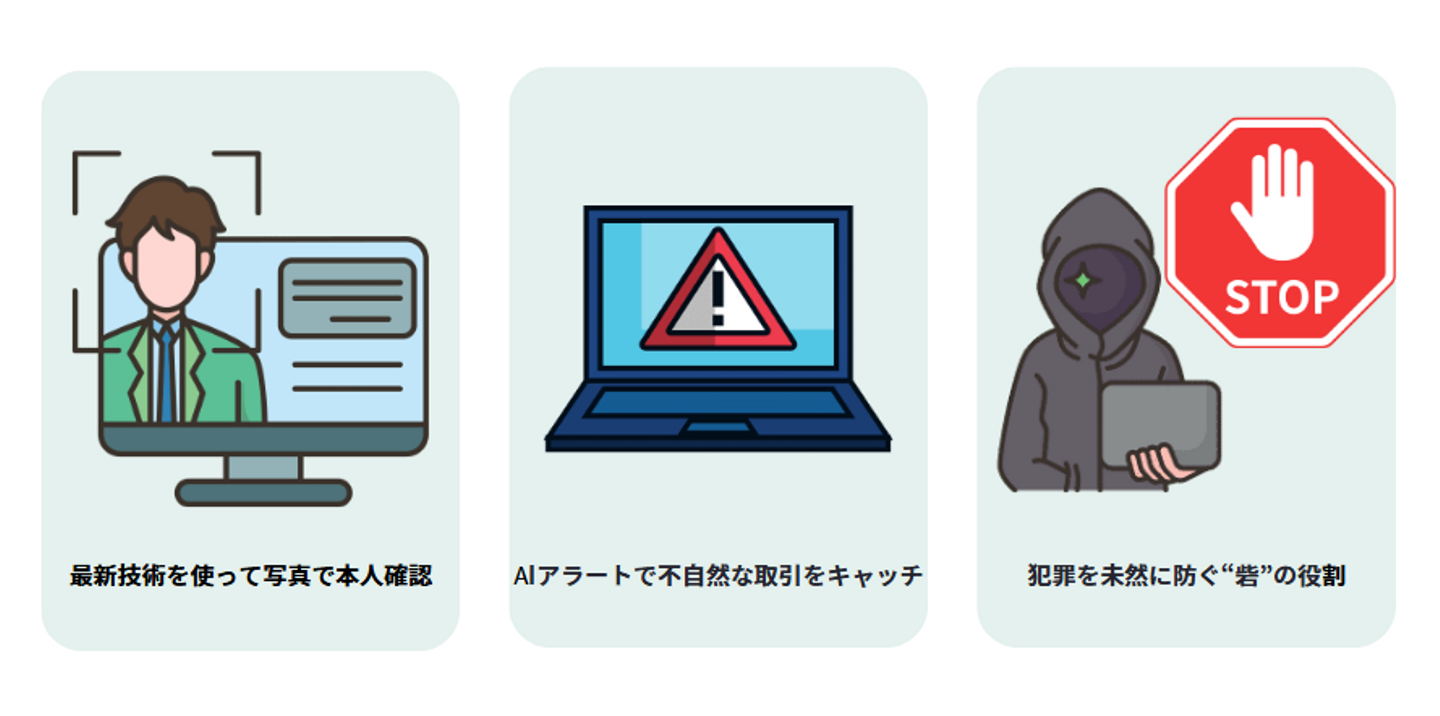 ※eKYC(electronic Know Your Customer)…銀行口座開設やスマホ契約などで必要な本人確認を、スマートフォンと写真撮影でオンライン完結させる仕組みです。従来必要だった「来店」や「郵便物の受け取り」が不要になり、即日利用開始できるなど、迅速で安全な手続きを実現します。不自然な動きをキャッチ