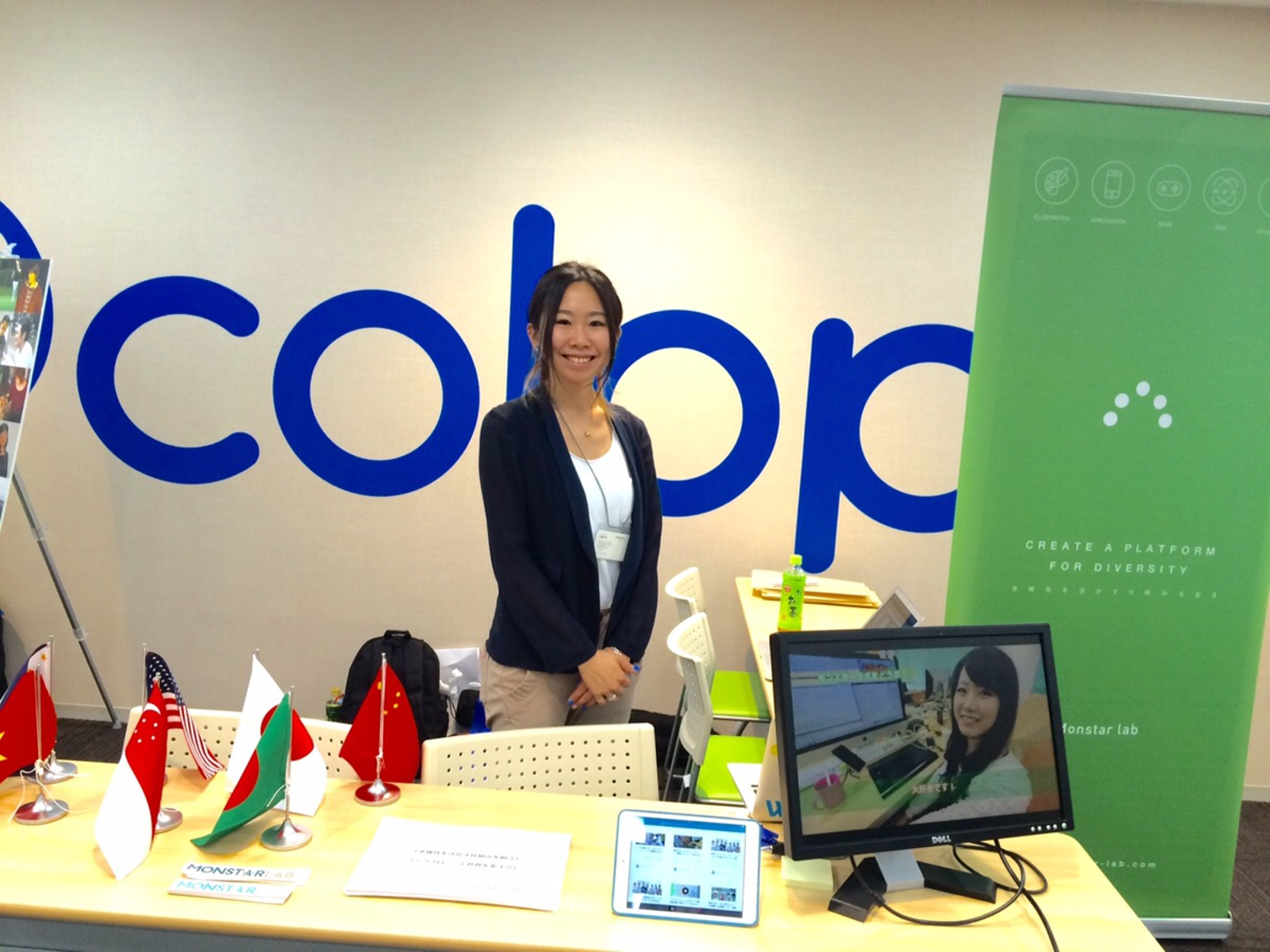 他にもランサーズさんやコロプラさん、クラウドワークスさんなど多くの企業が出展していました。写真は、いつもモンスター・ラボのPRに協力してくれるTalknoteの中根さん。