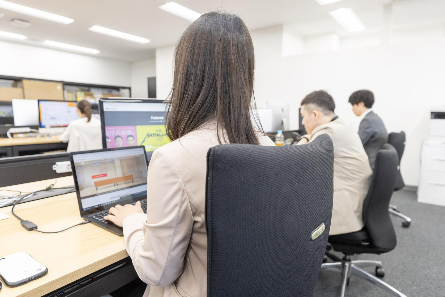 ▼チームワークの良いセールスチームです。スタジオレンタルや自社サービスのお問い合わせなど丁寧な対応が売りです。撮影のためスーツで揃えてもらいましたが、カジュアルな装いの日もあります。