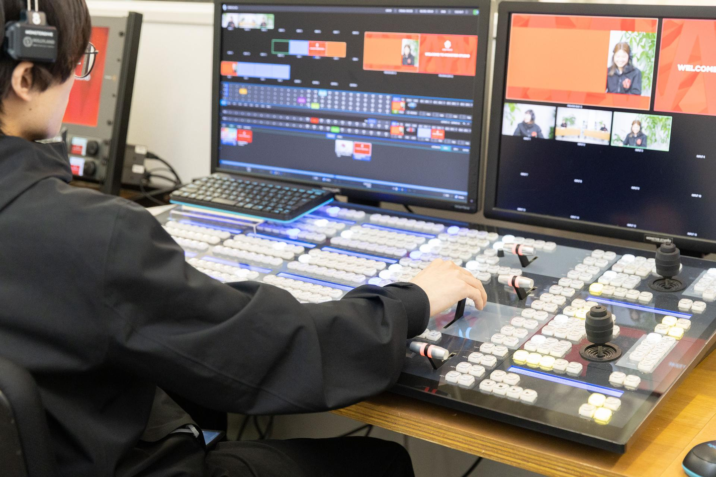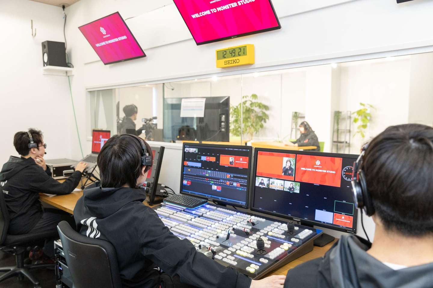 ▼Aスタジオのサブルームです。スイッチャーなどの機材が並び、本番になると緊張感が一層増します。