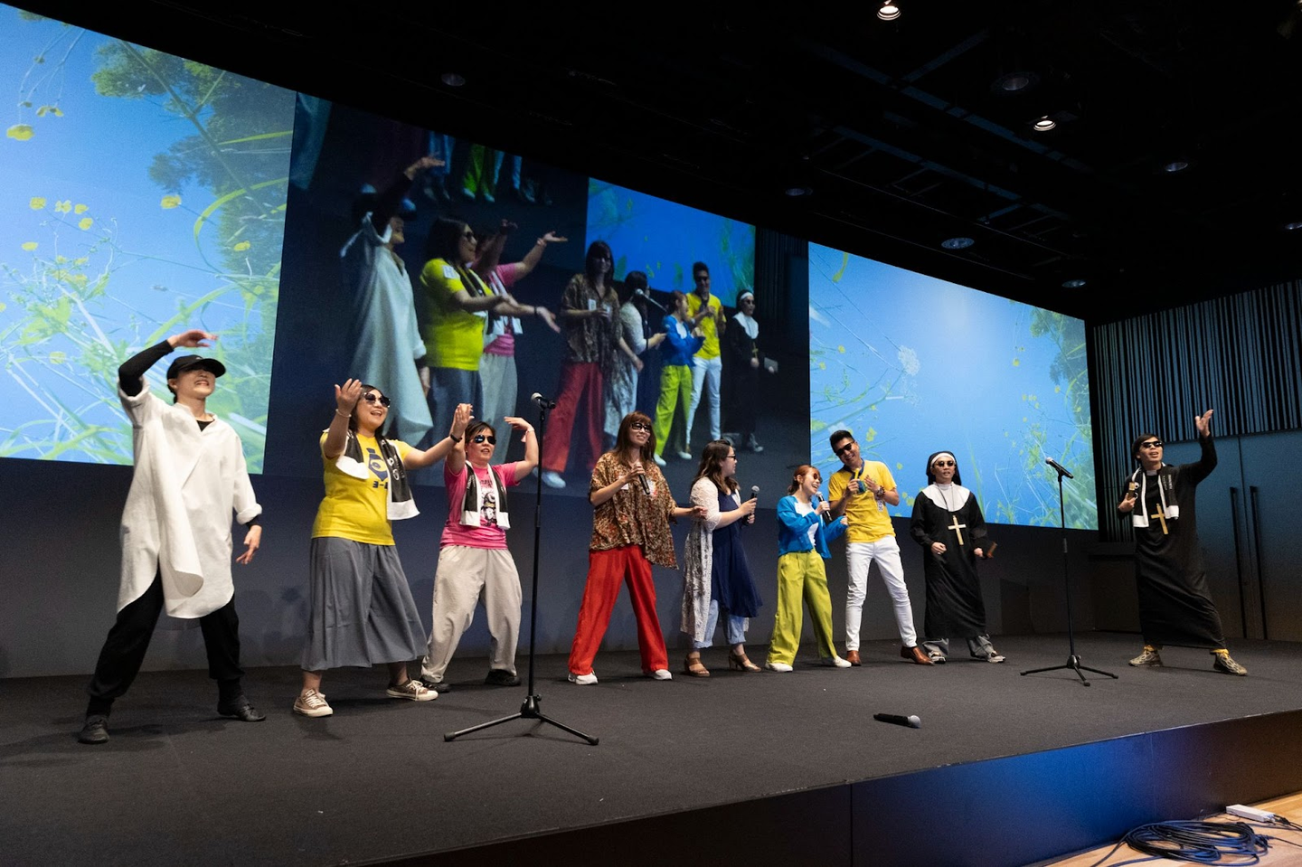 お次はゴスペル部の登場。MXにはキャンプ部やランニング部など色々な部活があり、そのうちの一つで今年結成されたばかり!会場のみんなで大合唱しました。