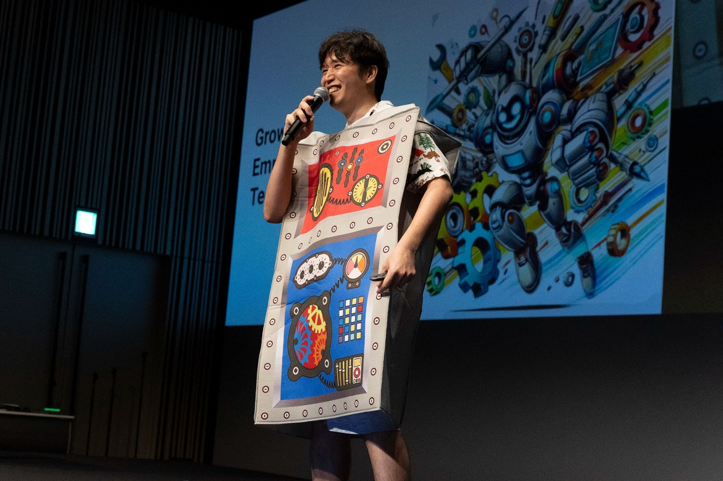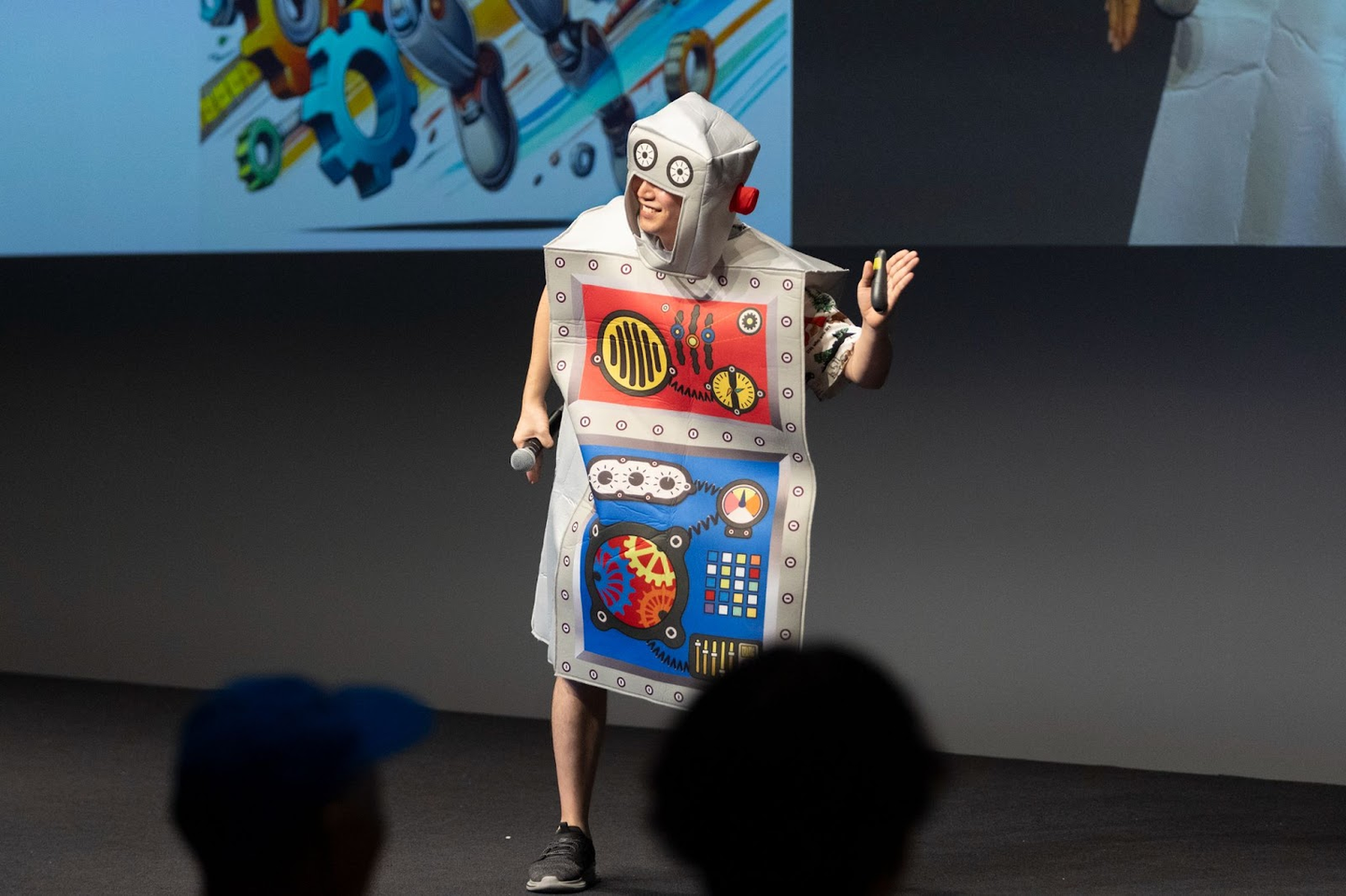 <Technology/IT&Security部 部長 Ken-chan:こちらもまさかのTechぽい(?)ロボットコスチュームで登場に会場は大爆笑。動きづらそうでした(笑)>
