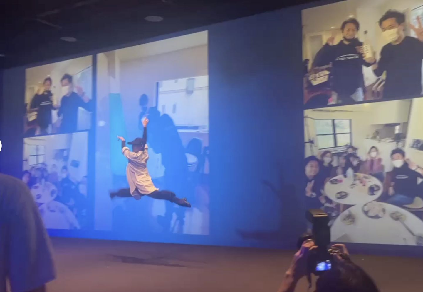 みんなでワイワイ楽しんでいると、突然会場が暗くなり・・・なんだなんだ!?と思っていると、テンションが上がる音楽と共に、某有名舞台に立っていたメンバーのダンスが!しかもその後ろには彼女が夜な夜な一生懸命作ってくれた、MXの創業から現在までの写真を集めたスライドショー!これは鳥肌ものでした(涙)
