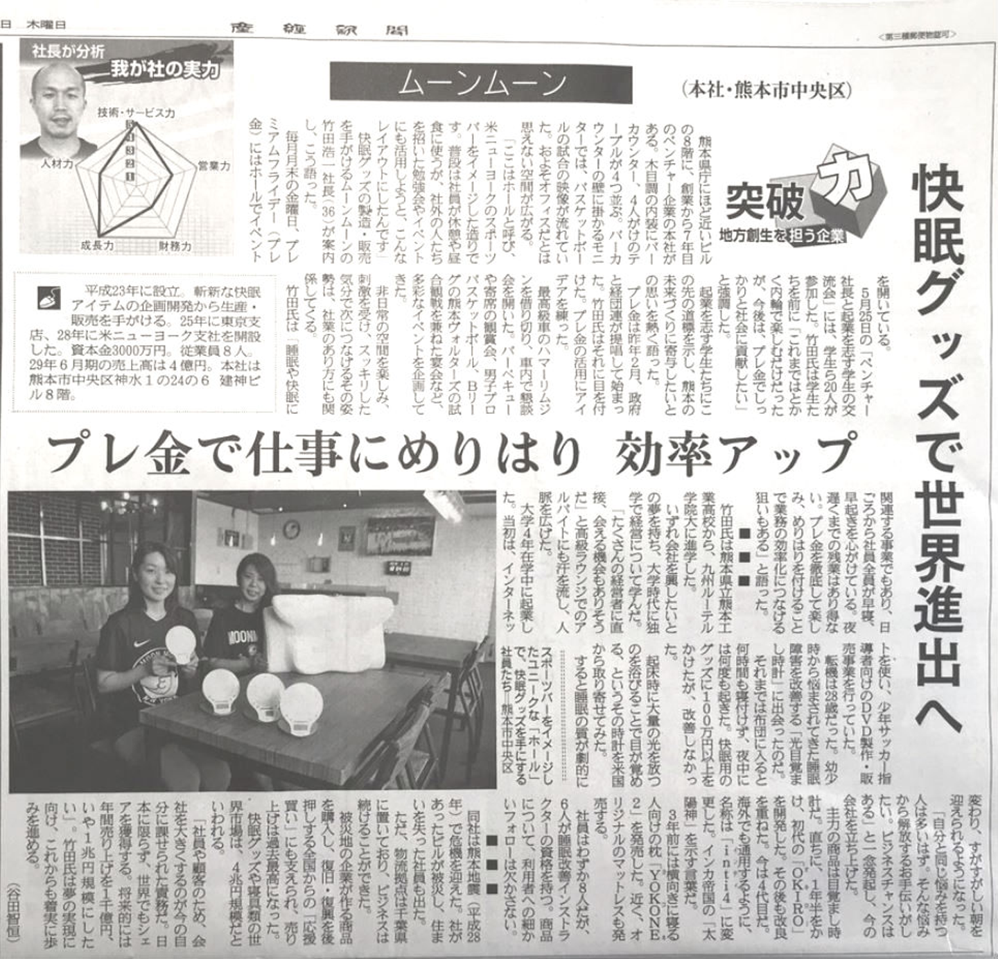 連載特集【突破力 地方創生を担う企業】にてムーンムーン株式会社が紹介されました。