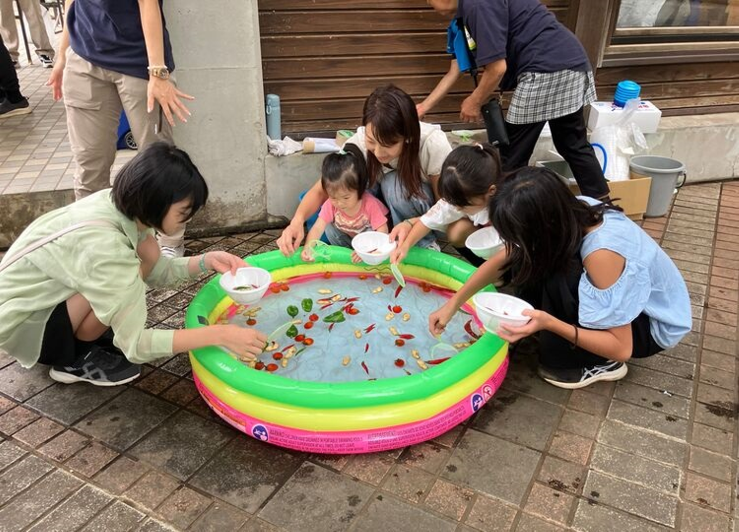 ポイでトマト、ピーマン、落花生をすくって楽しんでいただきました。
