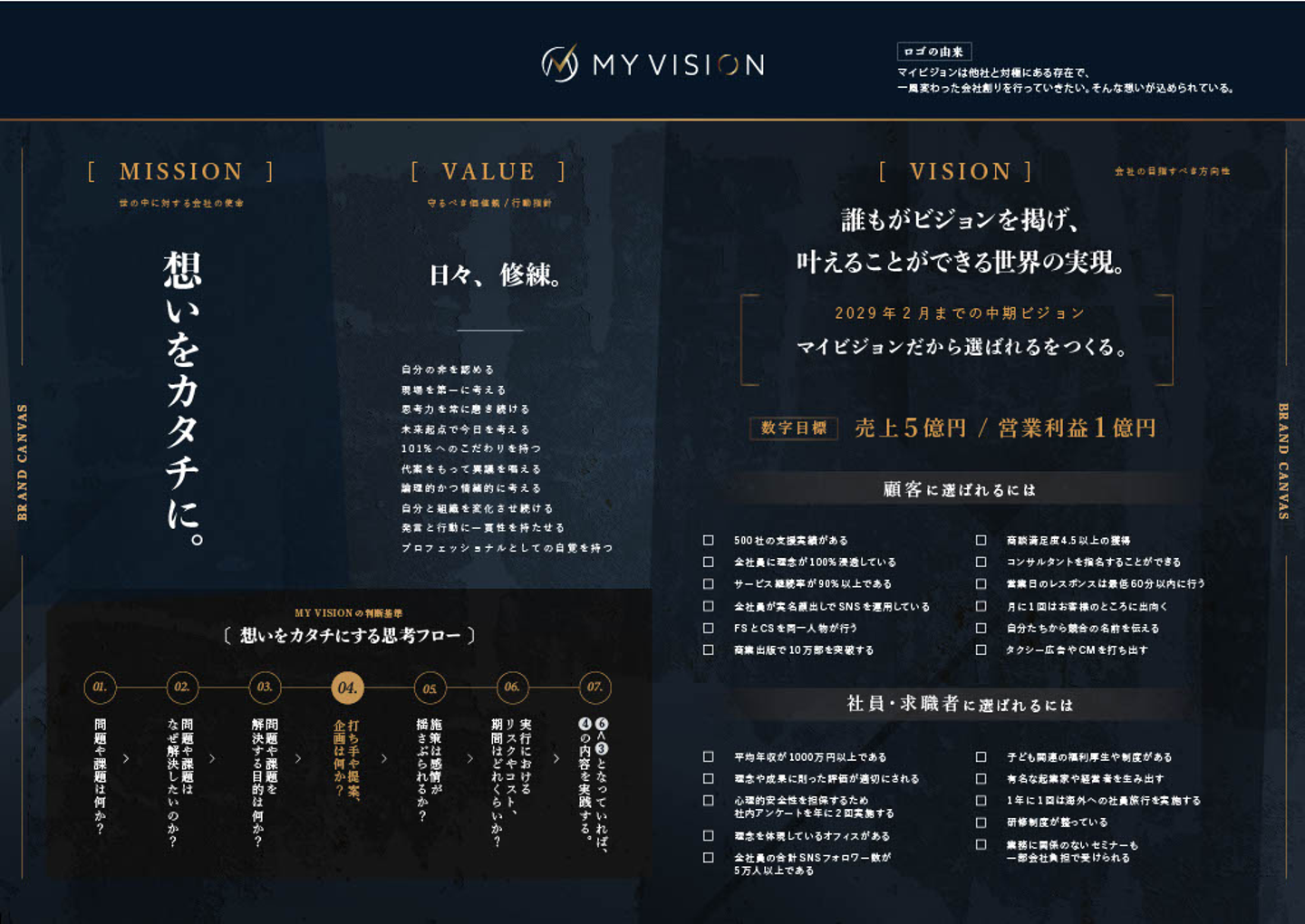 ▼マイビジョンのMVVをまとめたブランドキャンバス