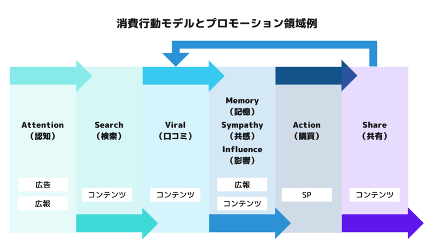 事業会社である私たちが、プロモーション計画を考える上で、これらの消費行動モデルの繋がりを考慮して、総合的に計画を立てて仕掛けていく必要があります。
