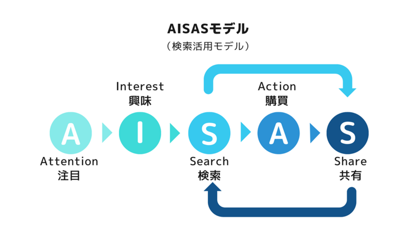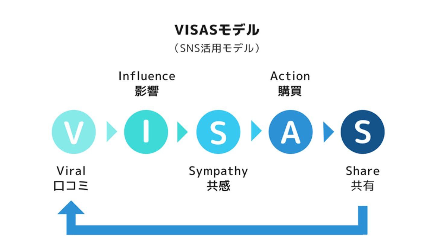 『AIDMA』が基本ですが、EC事業者は『AISAS』、そしてSNSが活発になることで『VISAS』と言われる消費行動モデルをもとにしています。
