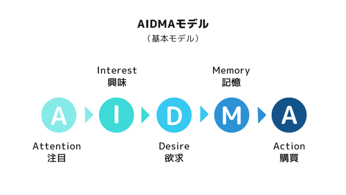 広告などを使ってブランド・商品を認知してもらい、そこから興味を持ってもらい、欲しいと考えるようになり、最終的に商品を覚えてもらい想起されることで購買に至るというプロセスです。