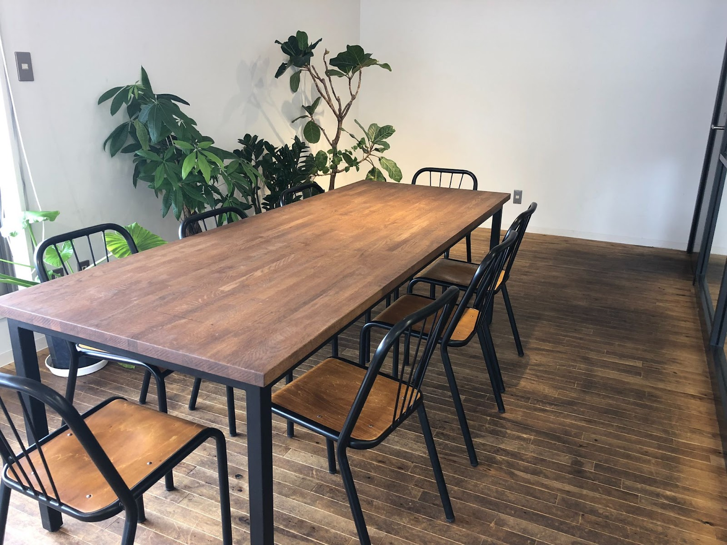 執務室の隣にはミーティングルームも完備。ベランダの入り口も併設しているため、日光がよく入ります。観葉植物の緑とあわせ、昼間はぽかぽかとあたたかな空気感のあるスペースです。