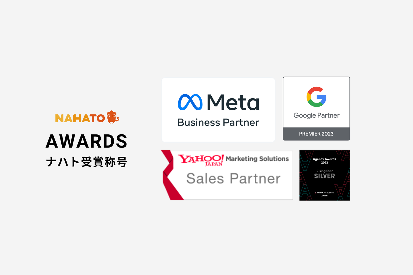 例えば、Meta社(旧Facebook社)からは、技術スキルやビジネスの成長を支援する能力が認められ、 「Meta Business Partners」としての認定 や、Google社からは広告に関する専門知識を活用して成果を最大限に高める能力を持った企業として、上位3%に入る Googleのパートナー「Premier Partner」 に選ばれています。さらに、Bytedance株式会社(TikTok運営企業)からは急成長を遂げている企業として 「Rising Star部門SILVER」 に選出されるなど、SNSを運営する世界的企業から高い評価を受けています。