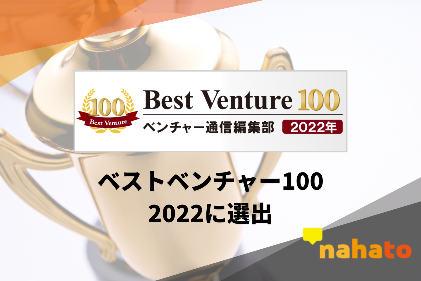 1年に1度、大手企業の社長や会長などが審査委員会を組み、今後の日本経済を担うであろうベンチャー企業を100社選出する企業称号 「ベストベンチャー100」に初選出 されました。約336万社あると言われている中小企業(※2)のうち、ナハトが選ばれたことは、その急速な成長が権威ある第三者からも認められていることの証と言えます。
