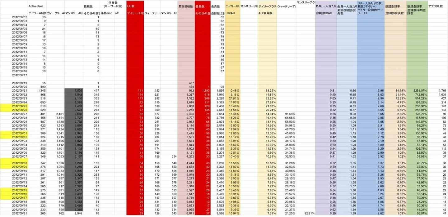 (上記画像はリリース後1ヶ月間のnanaのKPIシート)