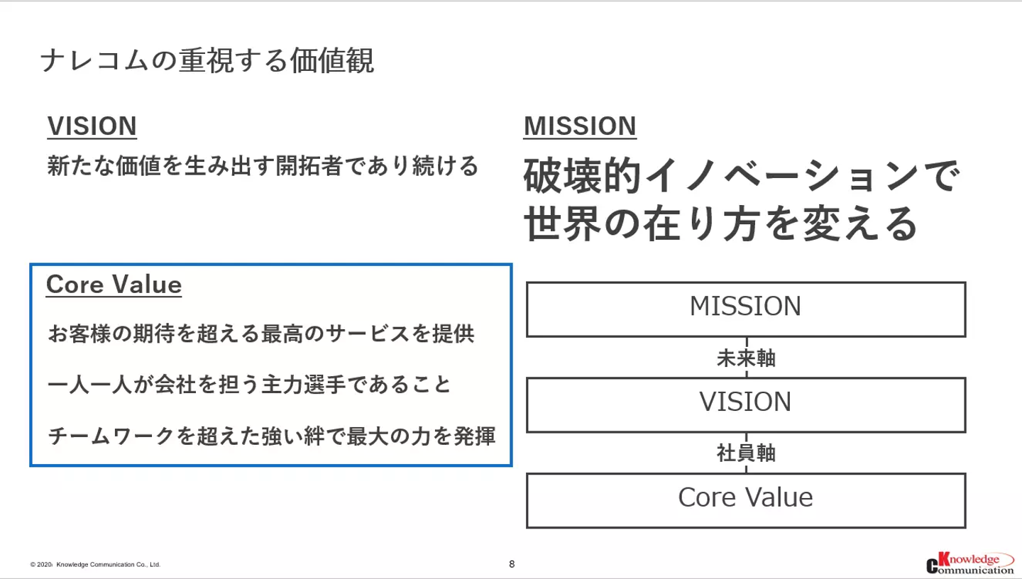 スタッフ:コアバリューに基づく価値観を社員全員が共有しているから、どんな発想や行動をしても、方向性にブレなく顧客が喜ぶ新しいサービスを創造できる。それが、ナレコムが目指している企業文化ですよね。