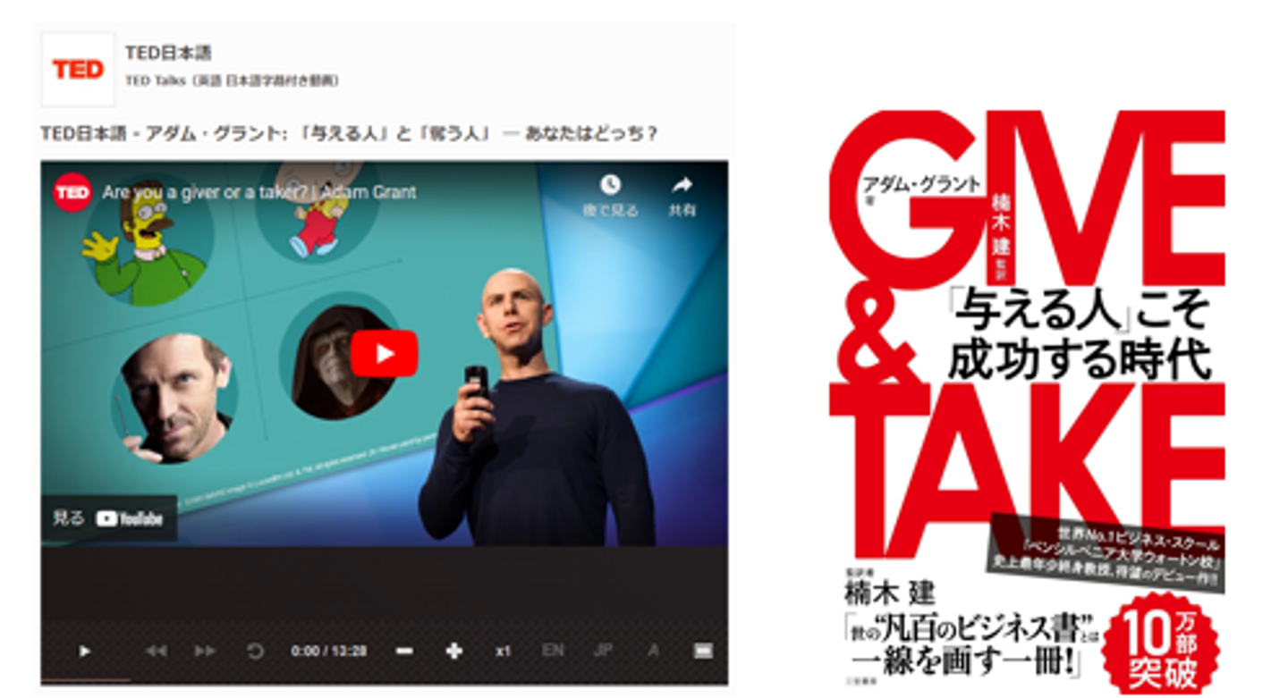 ナレコムでは、コアバリューを語る際に『Give&Take(利他主義)』の考え方がよく引用されます。