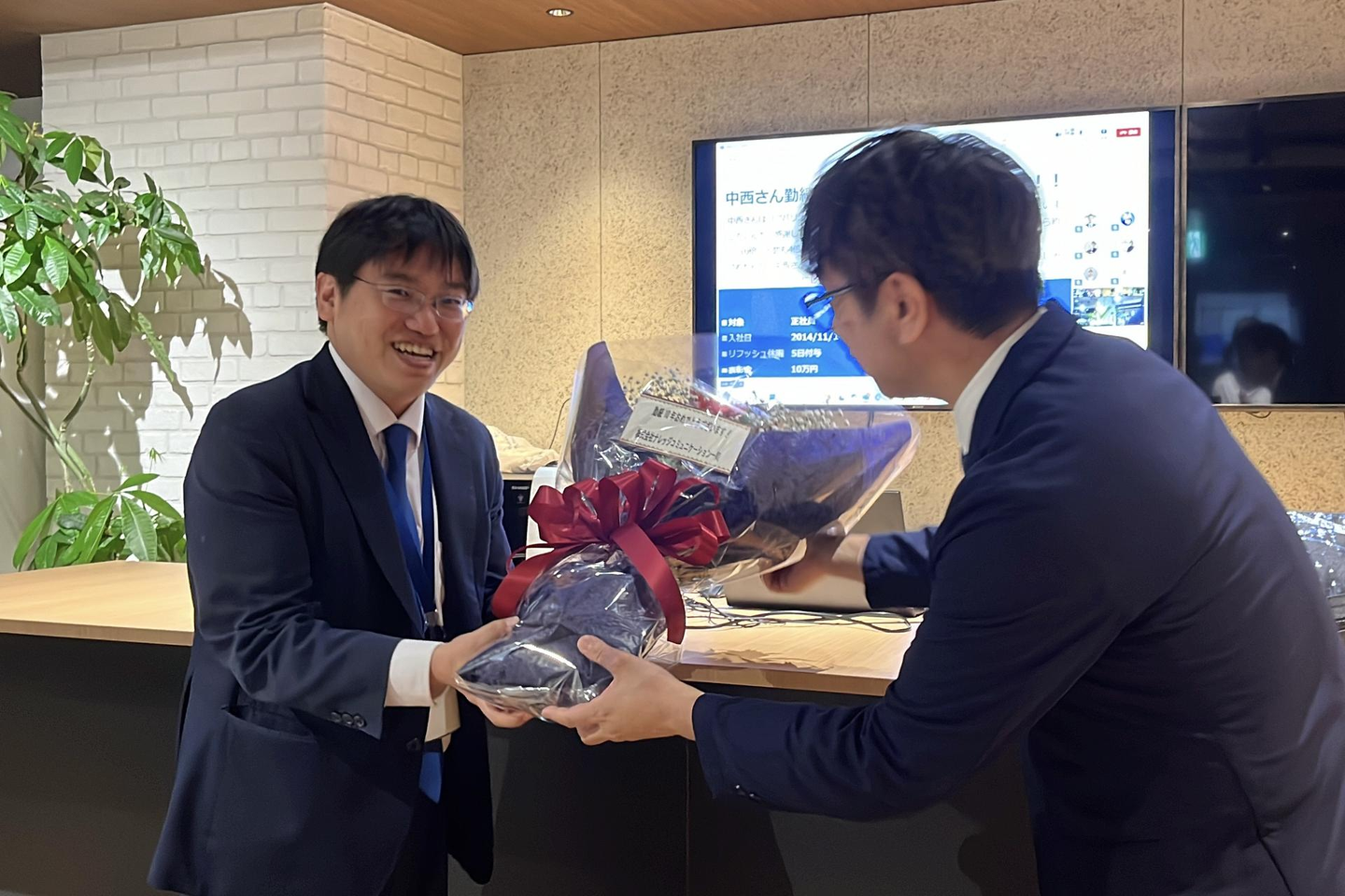 ナレコムが1番大切にしているコアバリューを誰よりも体現し、主力選手としてナレコムを引っ張ってきてくださっている中西さんに、ナレコムから表彰金とリフレッシュ休暇のプレゼントをお渡ししました。中西さんのこれまでの活躍と貢献に心から感謝し、今後も一緒に成長し続けていけることを願っています!